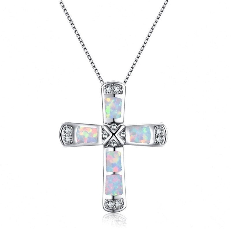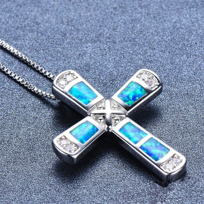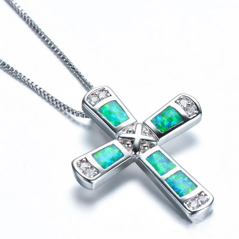 Opals Cross Pendant Necklaces For Women Chain Necklaces Female Ladies Silvery Jewelry Necklace Femme Choker Necklace New