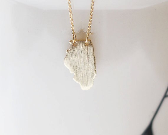 Outline Illinois State Necklaces IL State Geography Map Necklaces America USA State Map Chicago Necklaces for Hometown Gifts