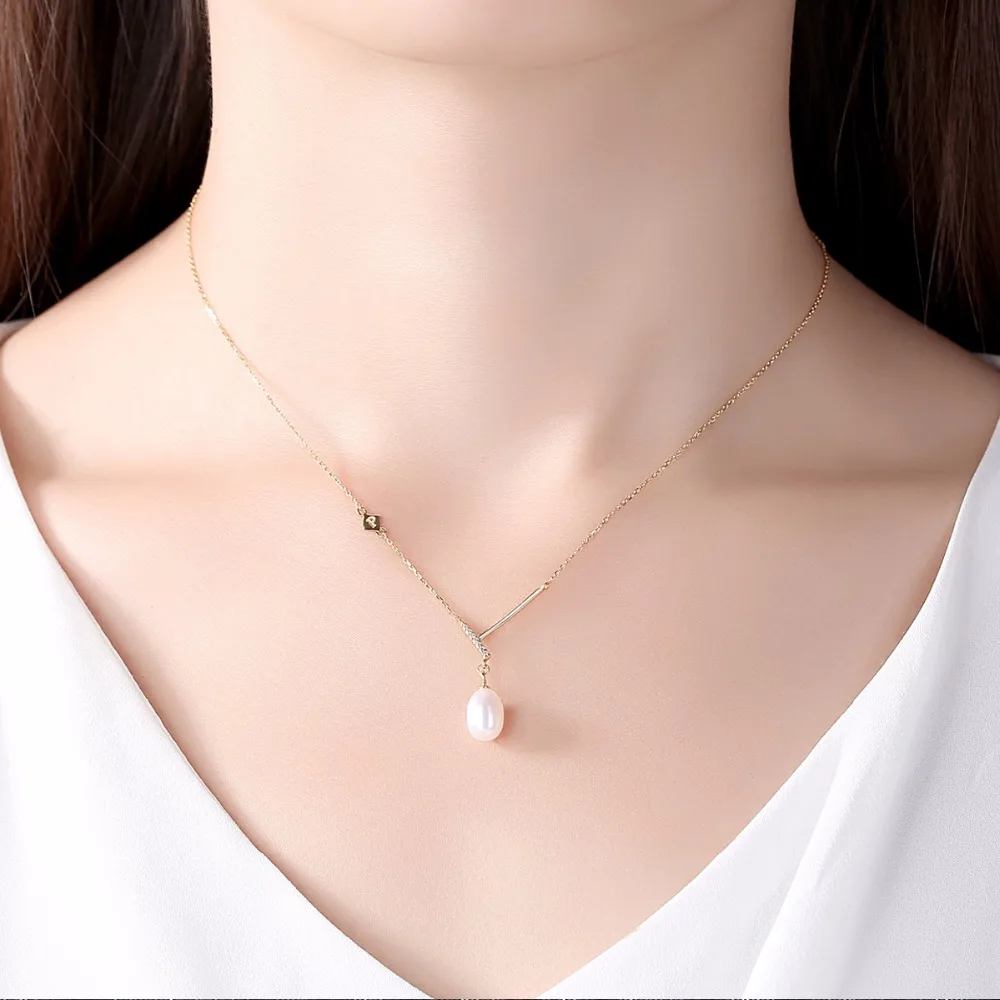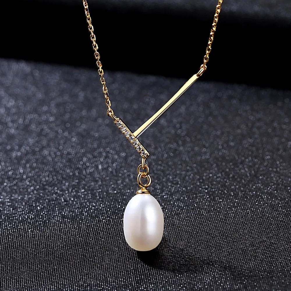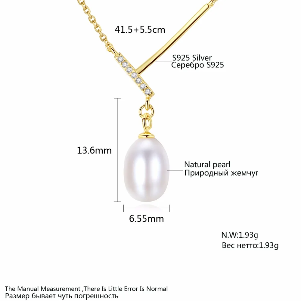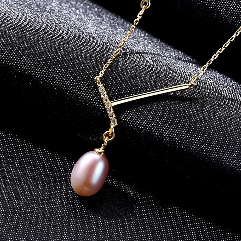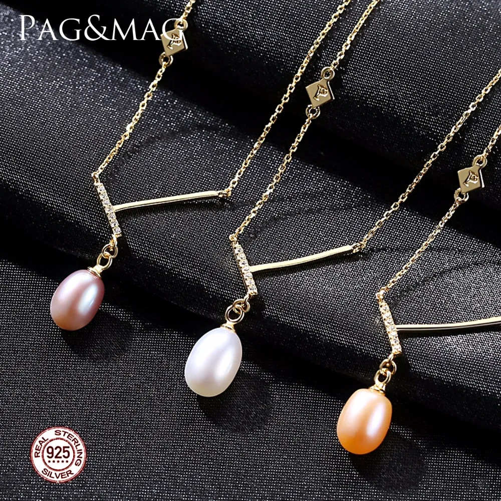 Brand New Arrival Simple Design 925 Silver Chain 7-8mm Natural Rice Pearl Pendant For Women Jewelry Gift