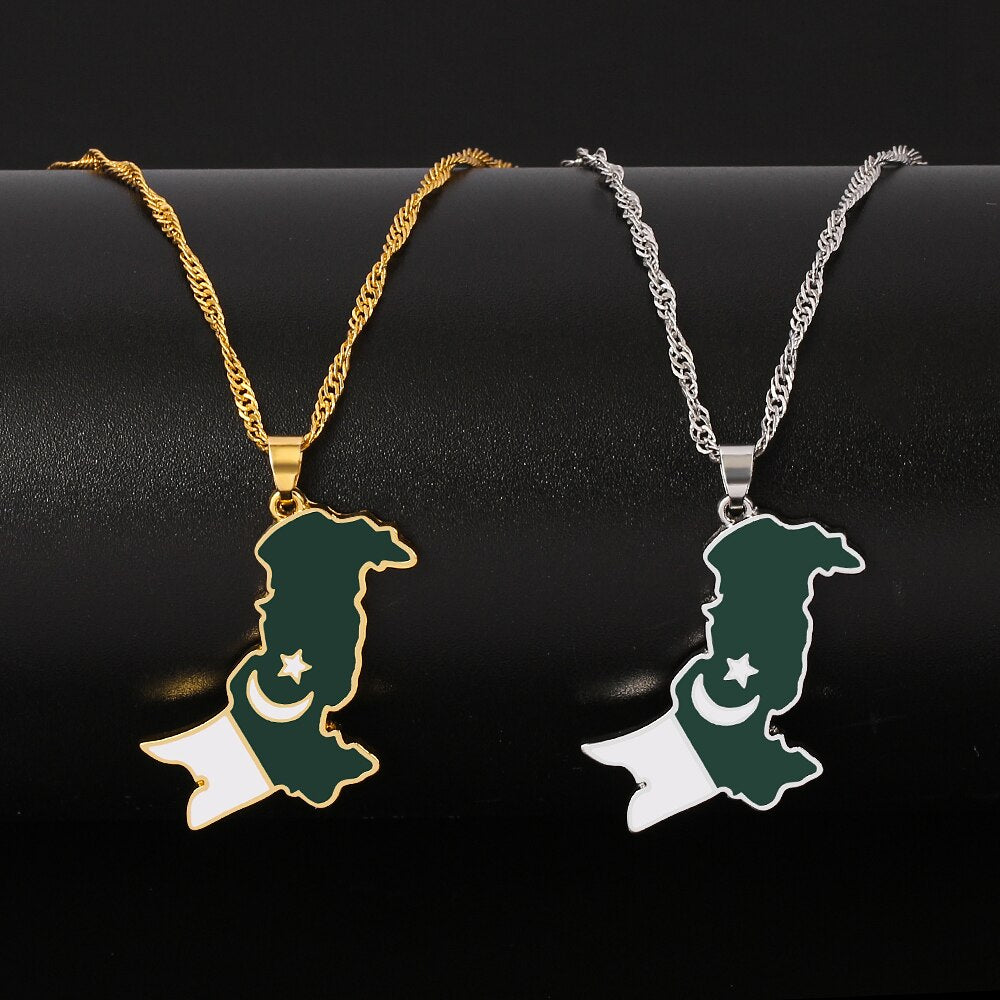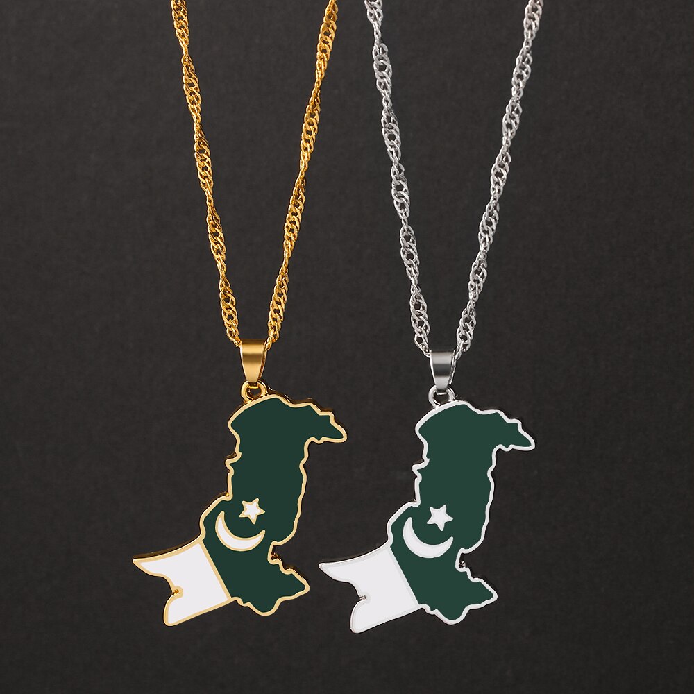 Pakistan Map & Flag Pendant Necklaces Gold Silver Plated Water Wave Chain Metal Necklace Choker Pakistani Ethnic Jewelry