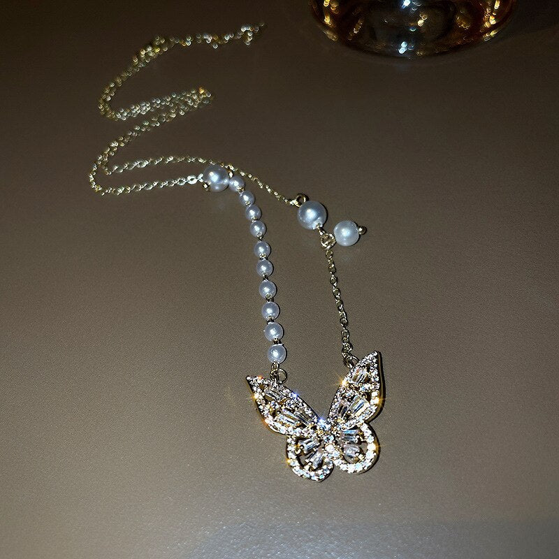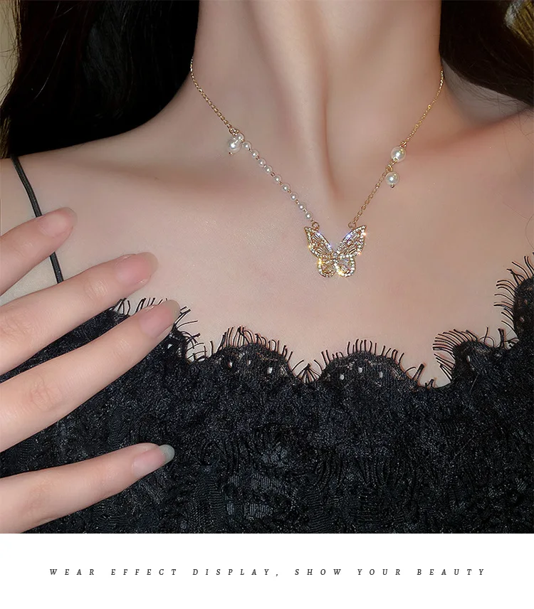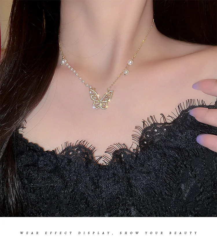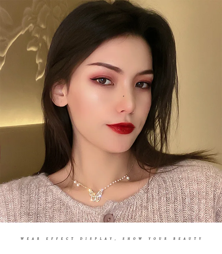 Pearl Bow Necklace Female Small Design Sense Young Net Red With Accessories Clavicle Chain Neck