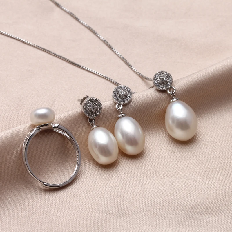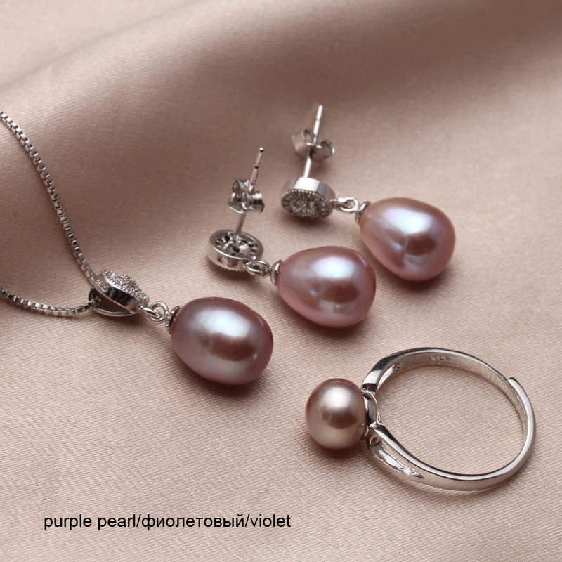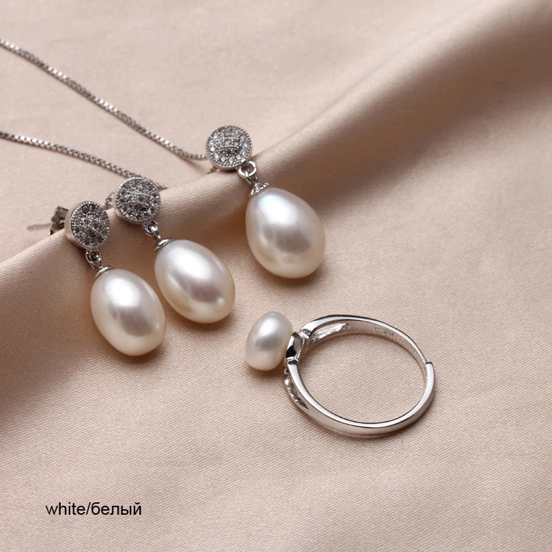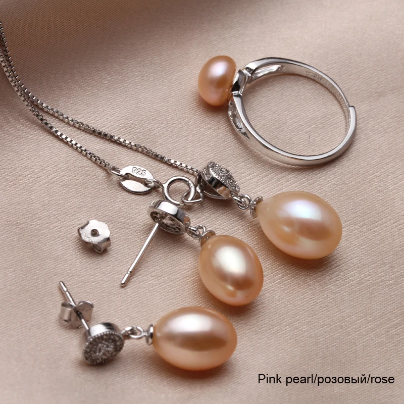 Pearl Jewelry Sets 925 Silver Pearl Pendant Necklace with Earrings and Ring Whole Set Fashion Jewelry White Pink