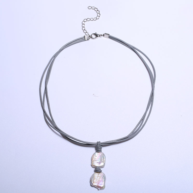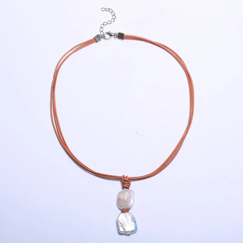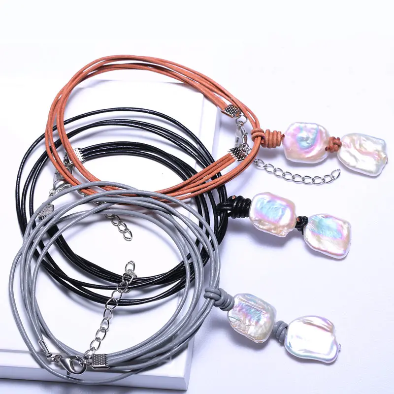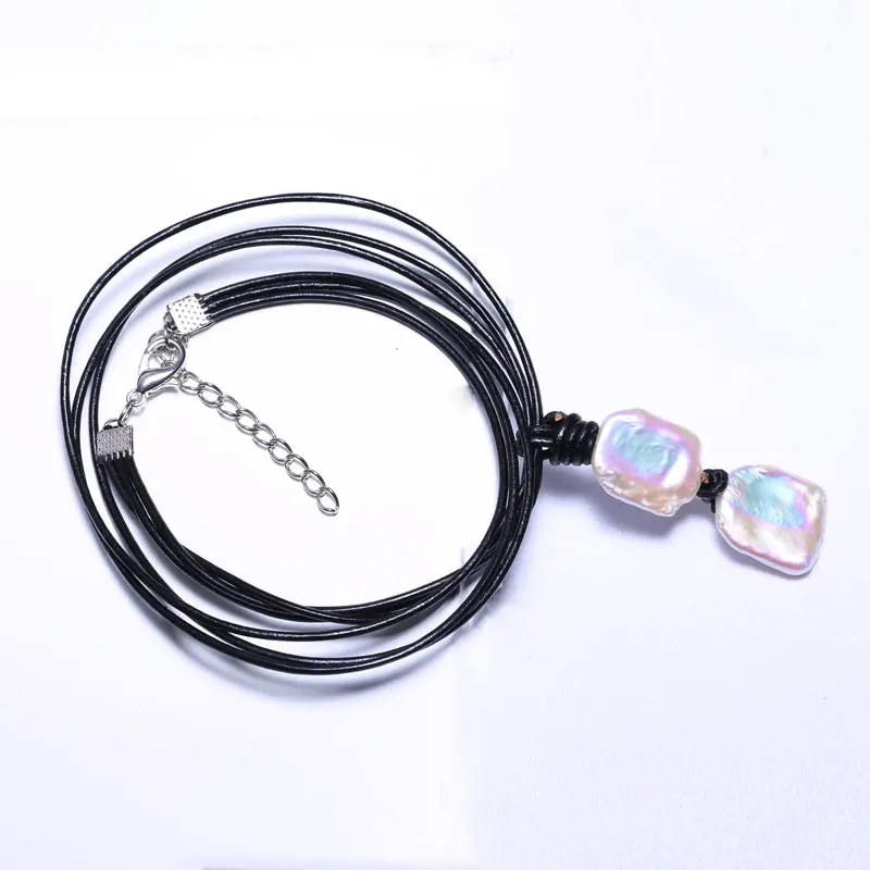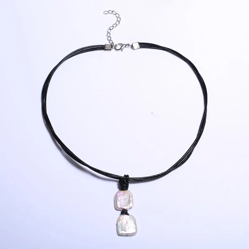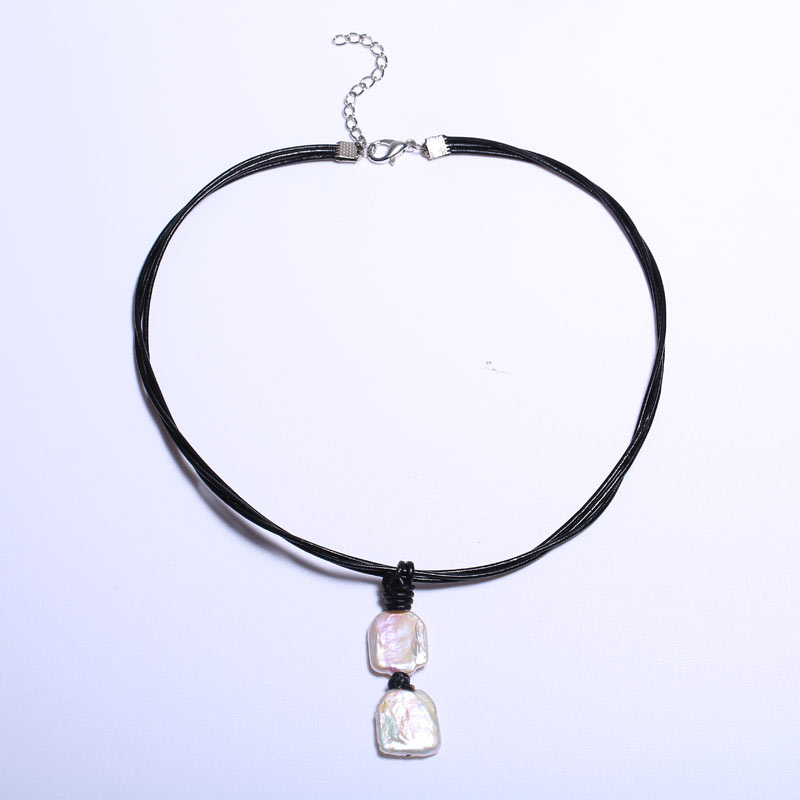Pearl Necklace Pearl Leather Rope Square Size 16 -17 mm