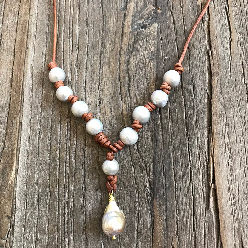 Pearls Y necklace,Barroque pearl pendant necklace,Real pearls necklace, Handmade choker necklace