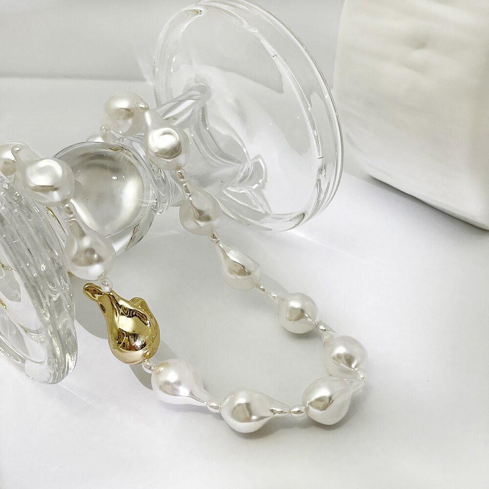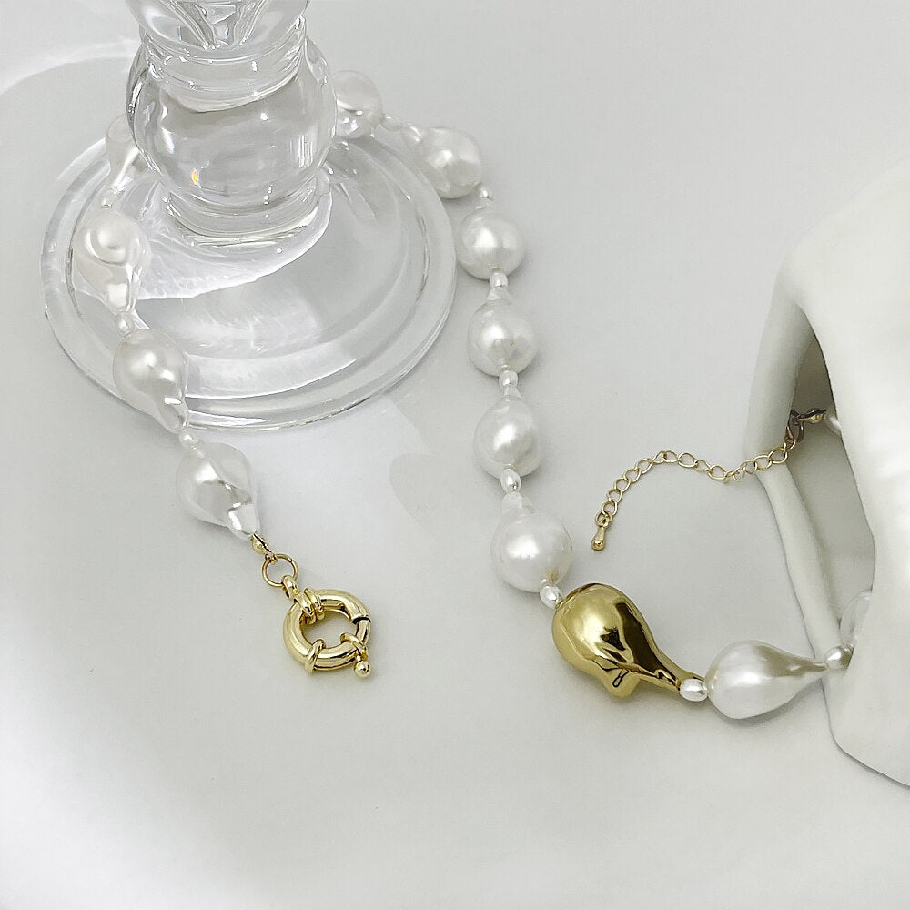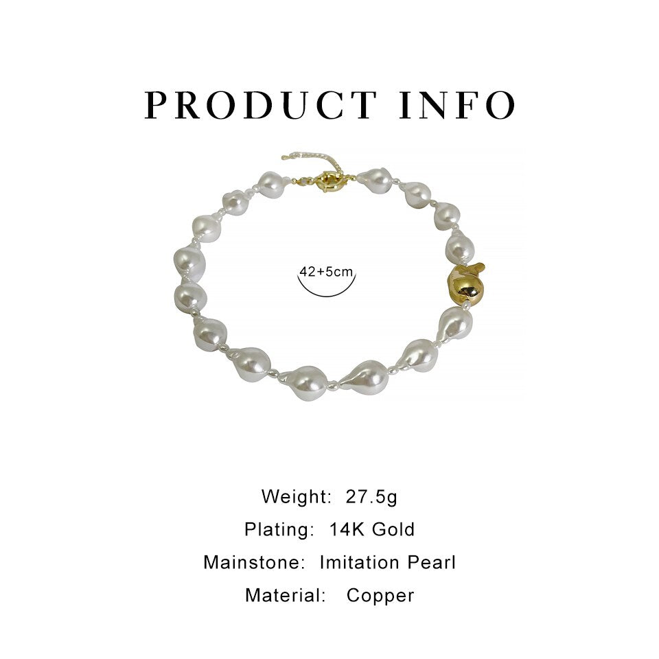 Style : Big Baroque Imitation Pearl Brass Bead Necklace
