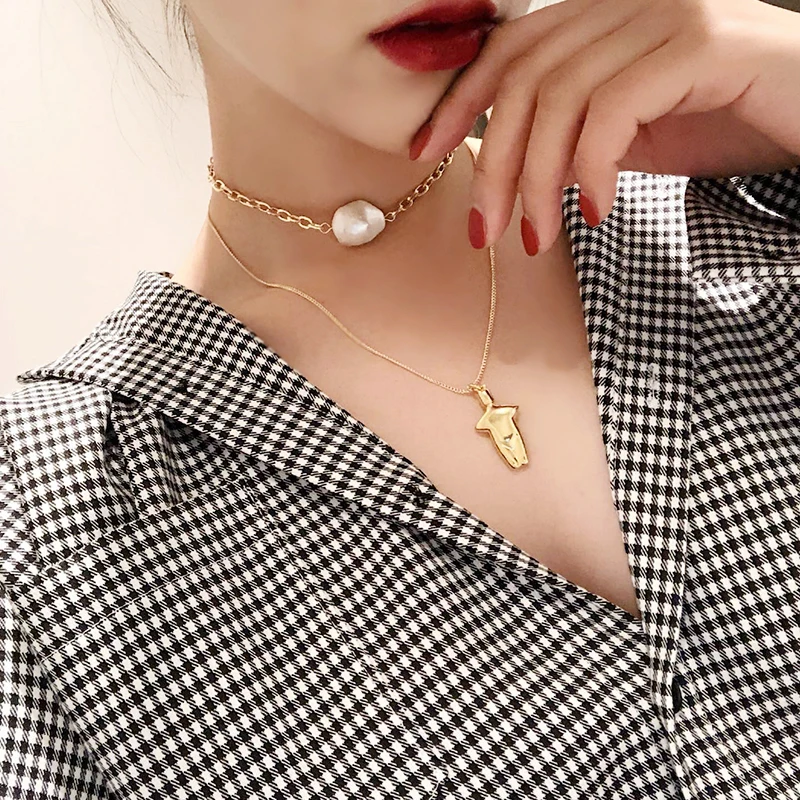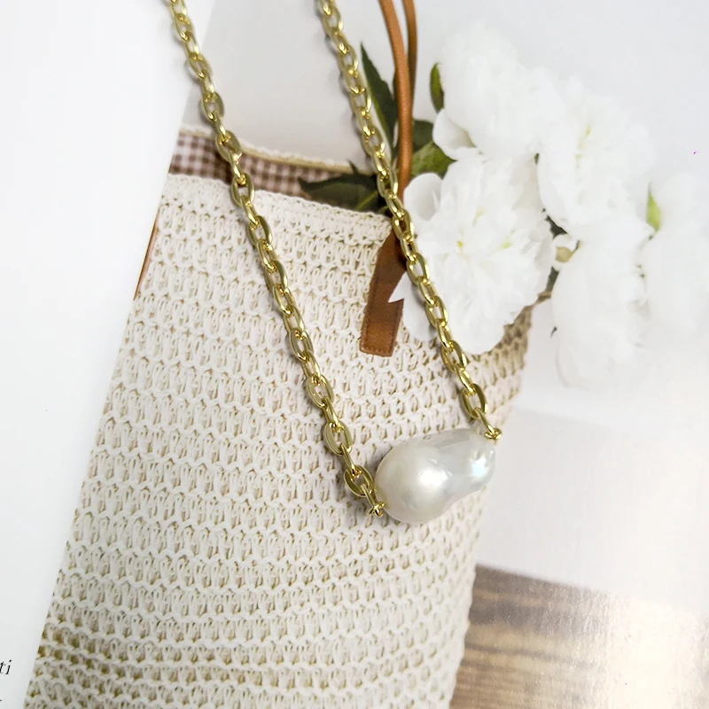 Peri'sBox Large Baroque Pearl Choker Necklace Jewelry Women Chunky Gold Chain Freshwater Pearl Necklaces Chokers Statement