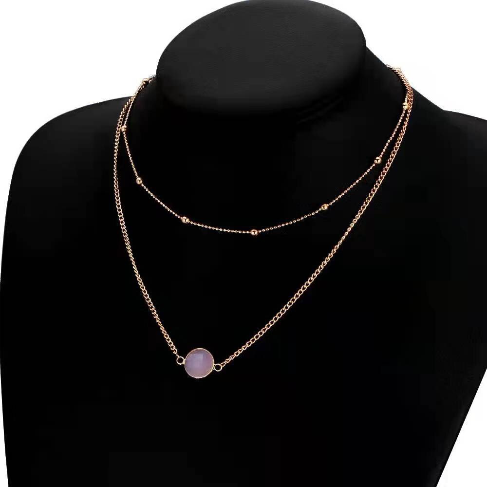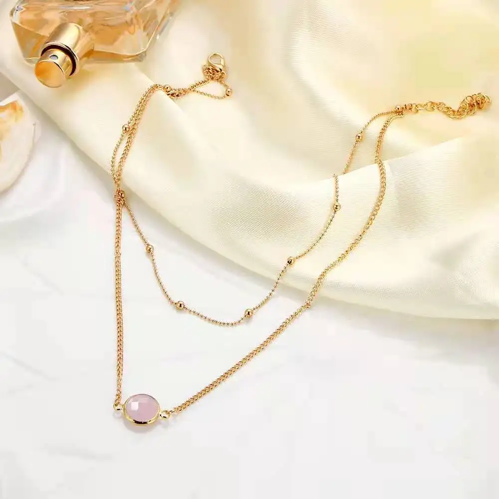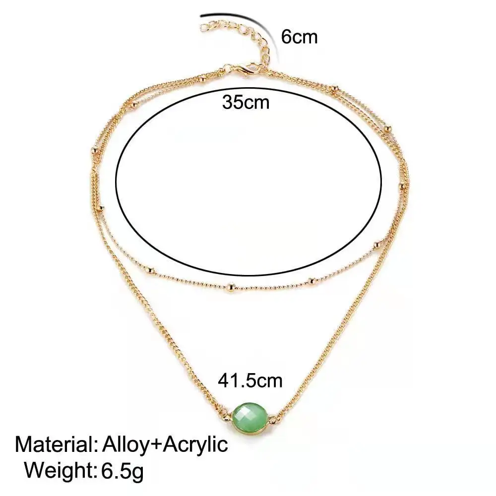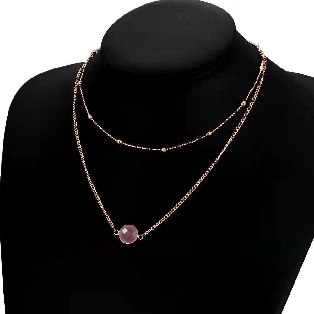 Personality Women's Necklace Creative Retro Simple Glass Inlaid Double Neck Necklace 2022 Trend Product Party Gift