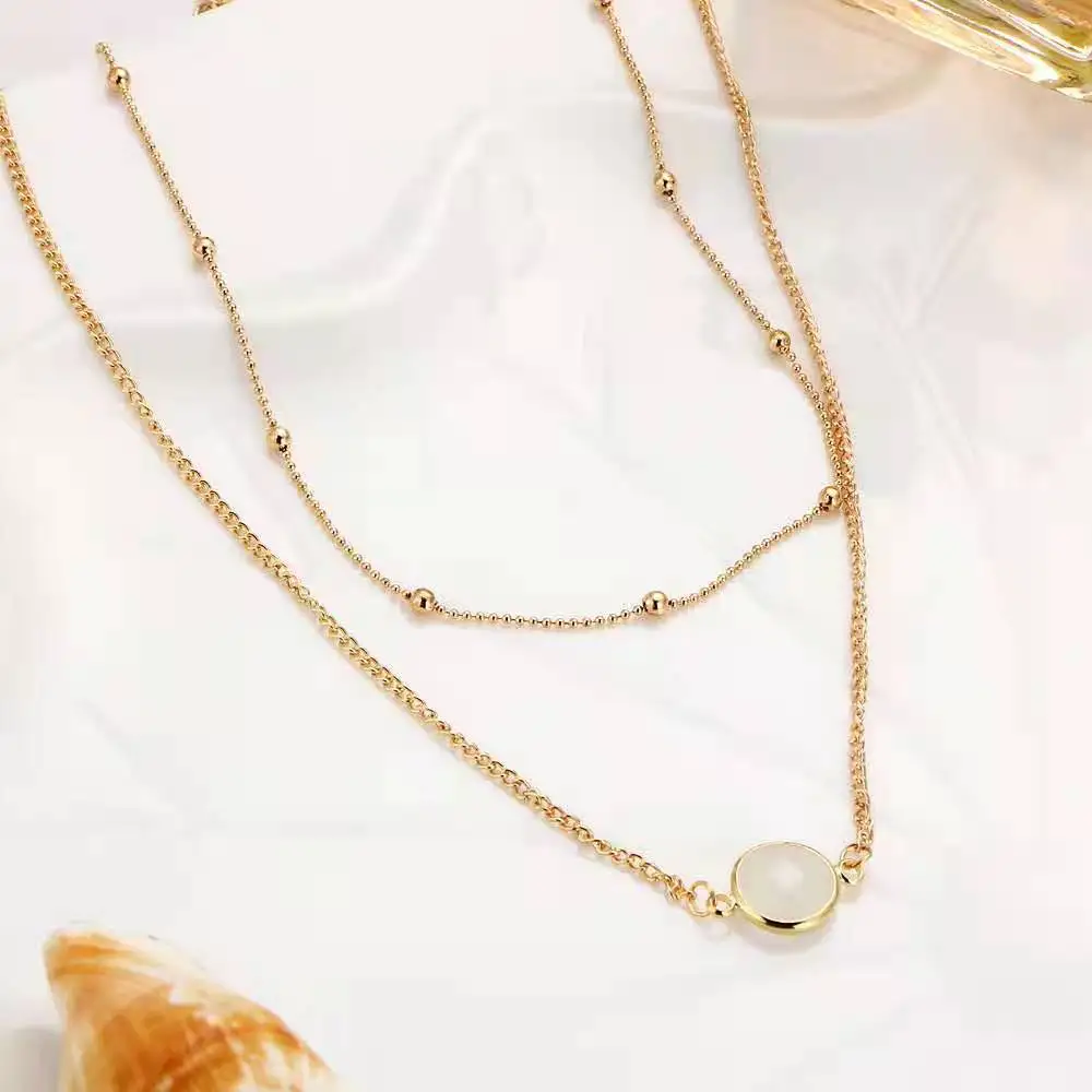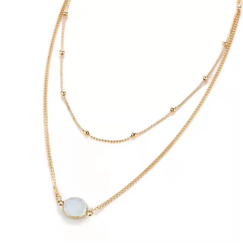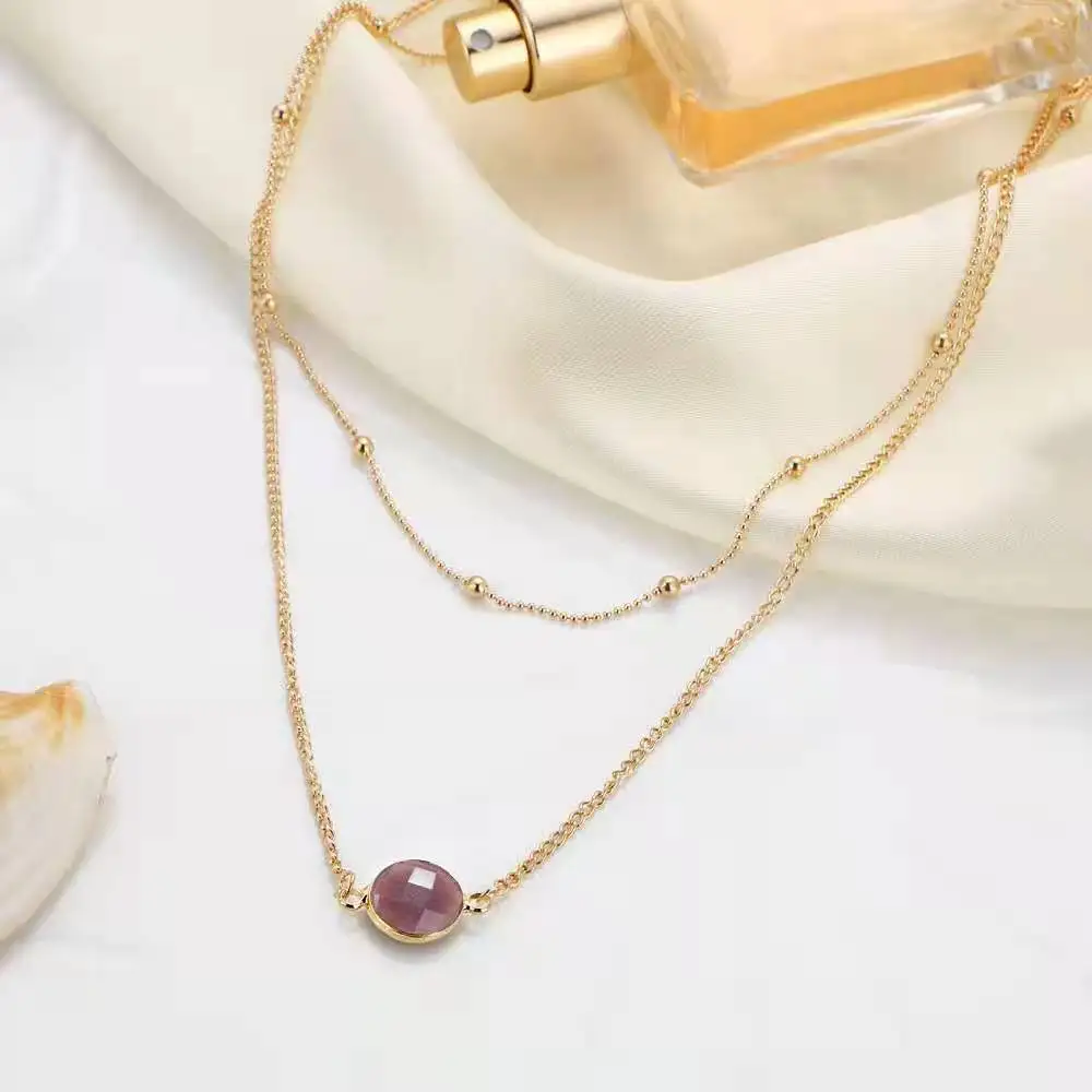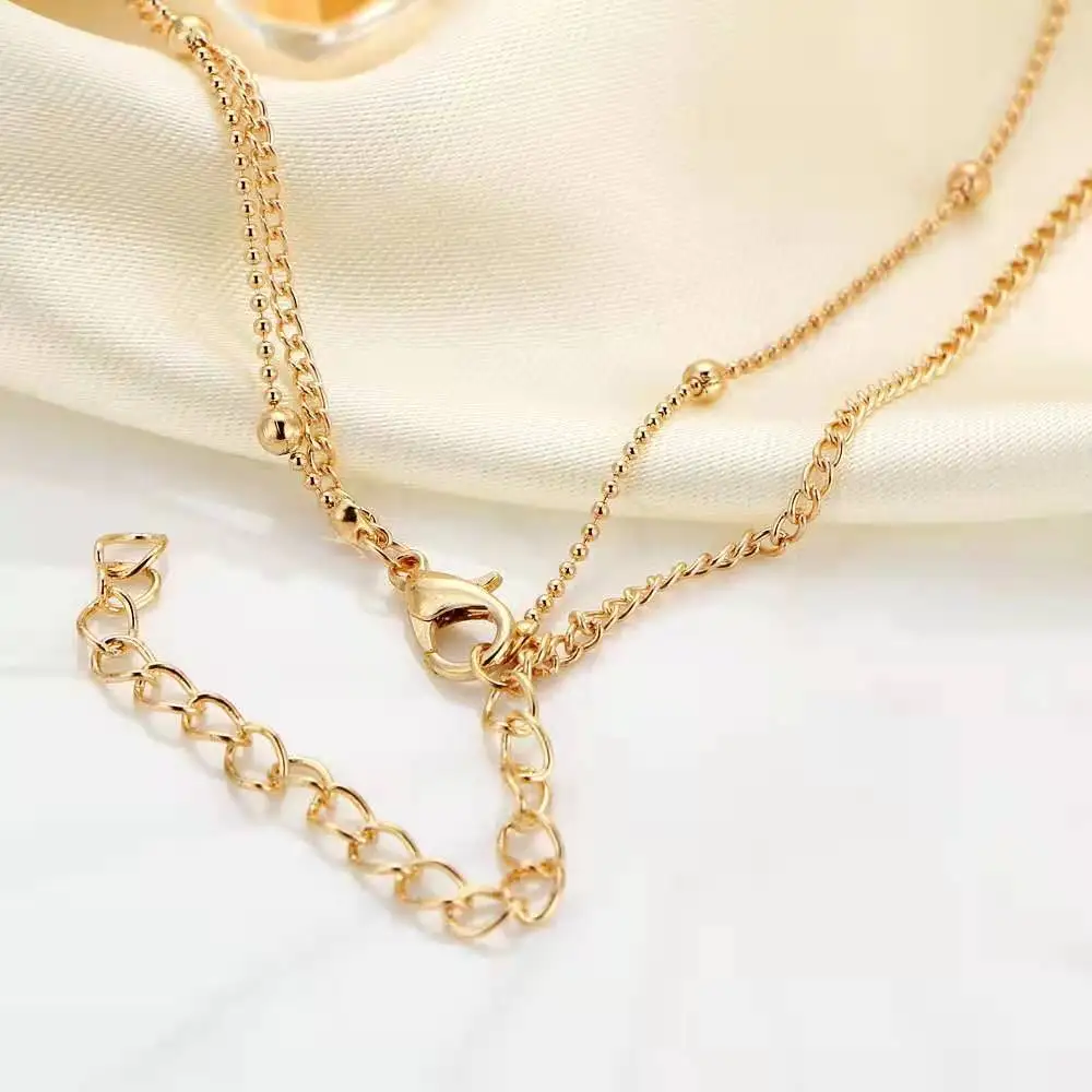 Personality Women's Necklace Creative Retro Simple Glass Inlaid Double Neck Necklace 2022 Trend Product Party Gift