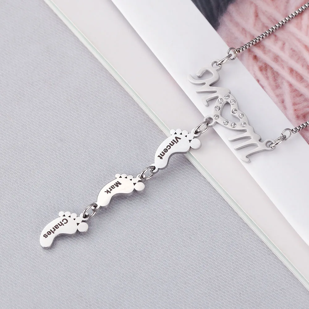Mothers day gift,Mother's Day gift,Birthday gift for women/female,Birthday gift for mother,Birthday gift for wife,Best gift idea for women/female,jewelry gift for mother or wife,necklace for her Because Mom is always there for you, taking care of the family and showing you the way with infinite patience, give her this amazing Inlay Mom Necklace With Baby Feet. You can customize this necklace exactly as you want: Add 1 To 8 Charms On The Necklace Engrave The Name Of A Child On Each Pendant