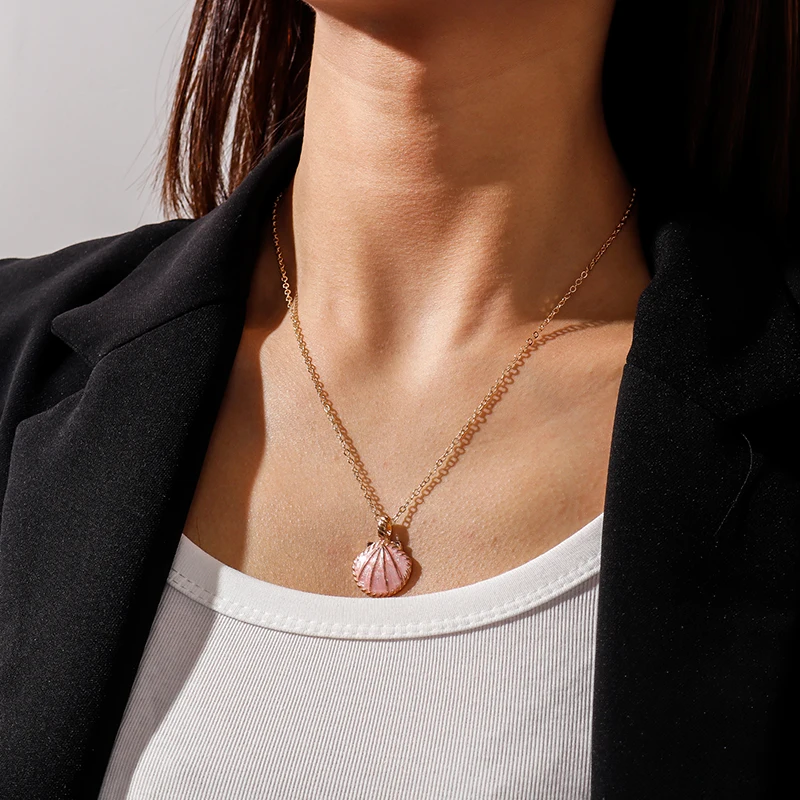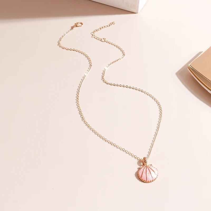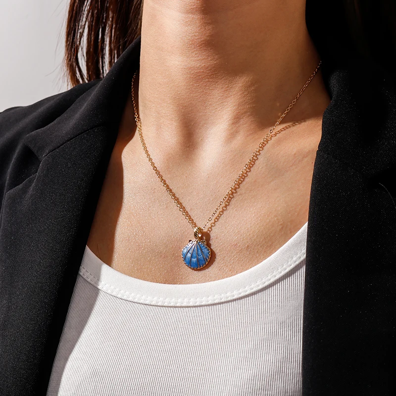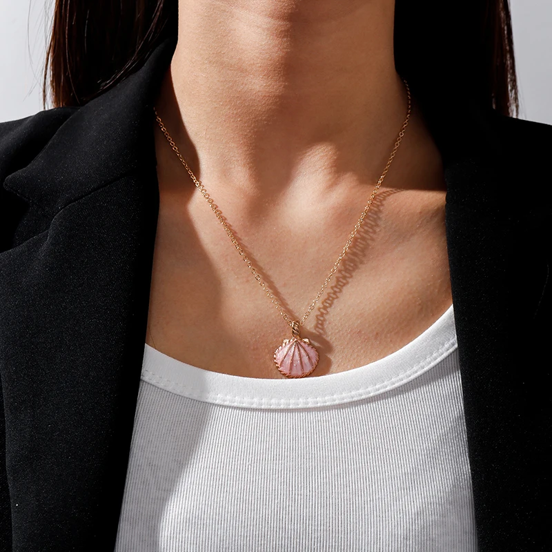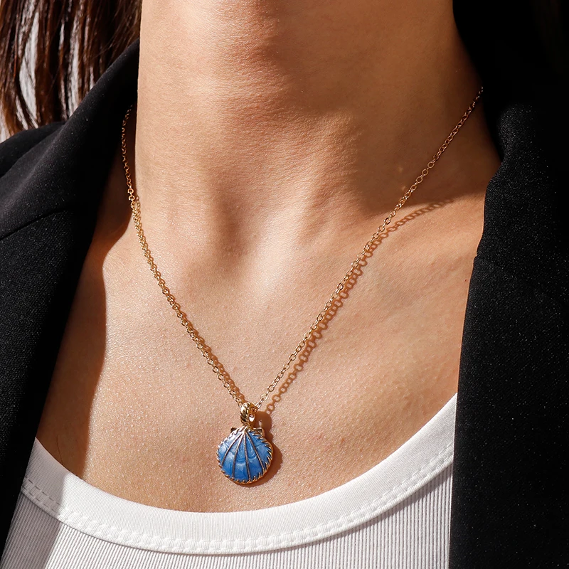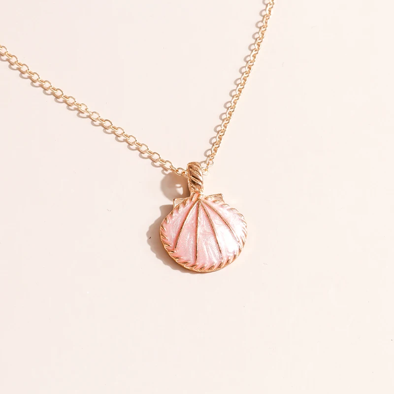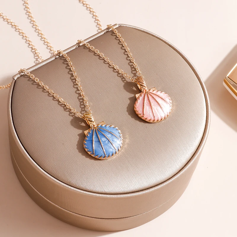 Pink Blue Enamel Shell Pendants Necklaces for Women Gold Color Chain Necklaces Ocean Beach Femme Brincos Jewelry Crafts