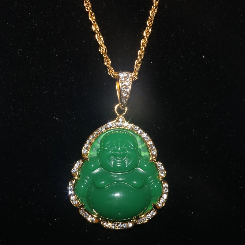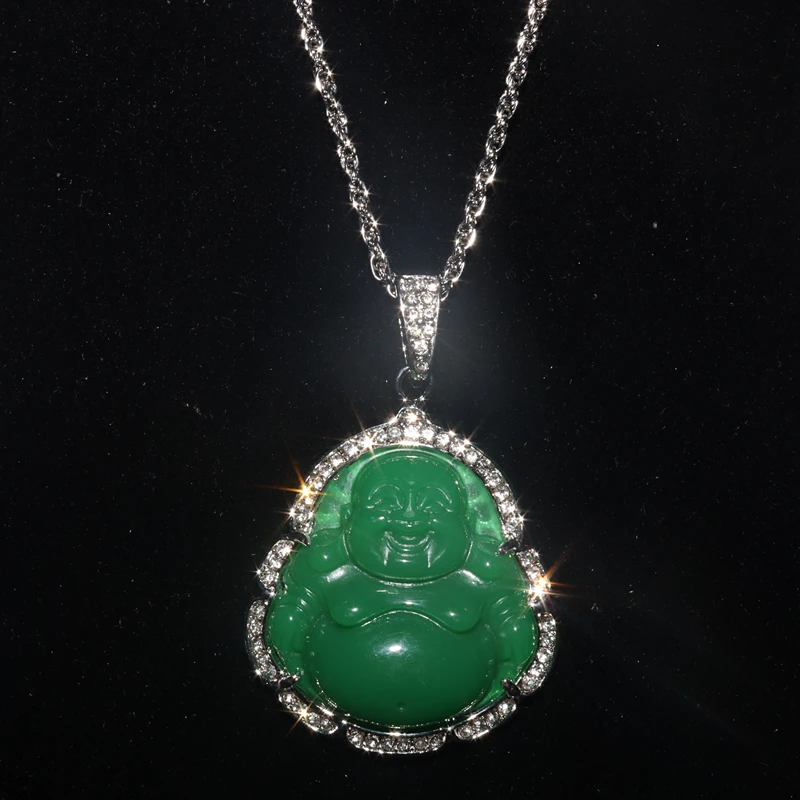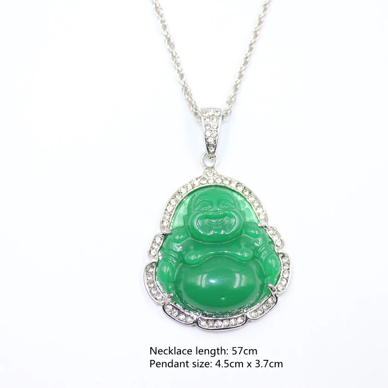 Pink White Pendant Buddha Necklace Women Chinese Style Maitreya Jewelry Talisman Necklace with Golden Chain