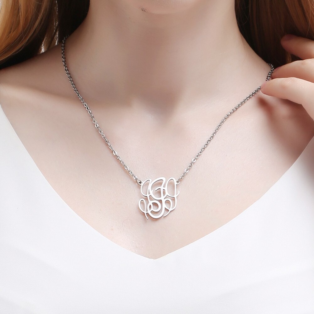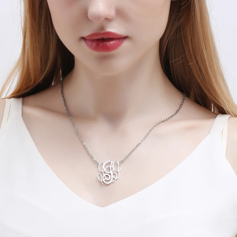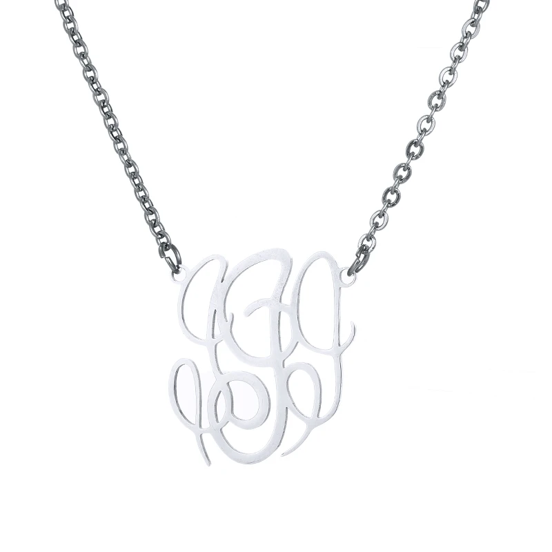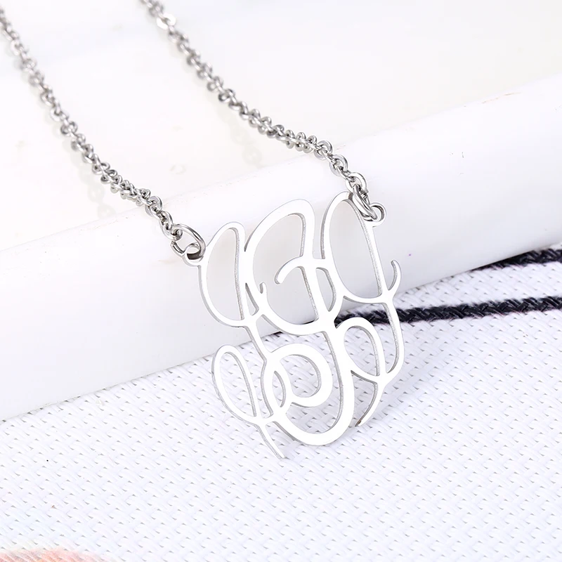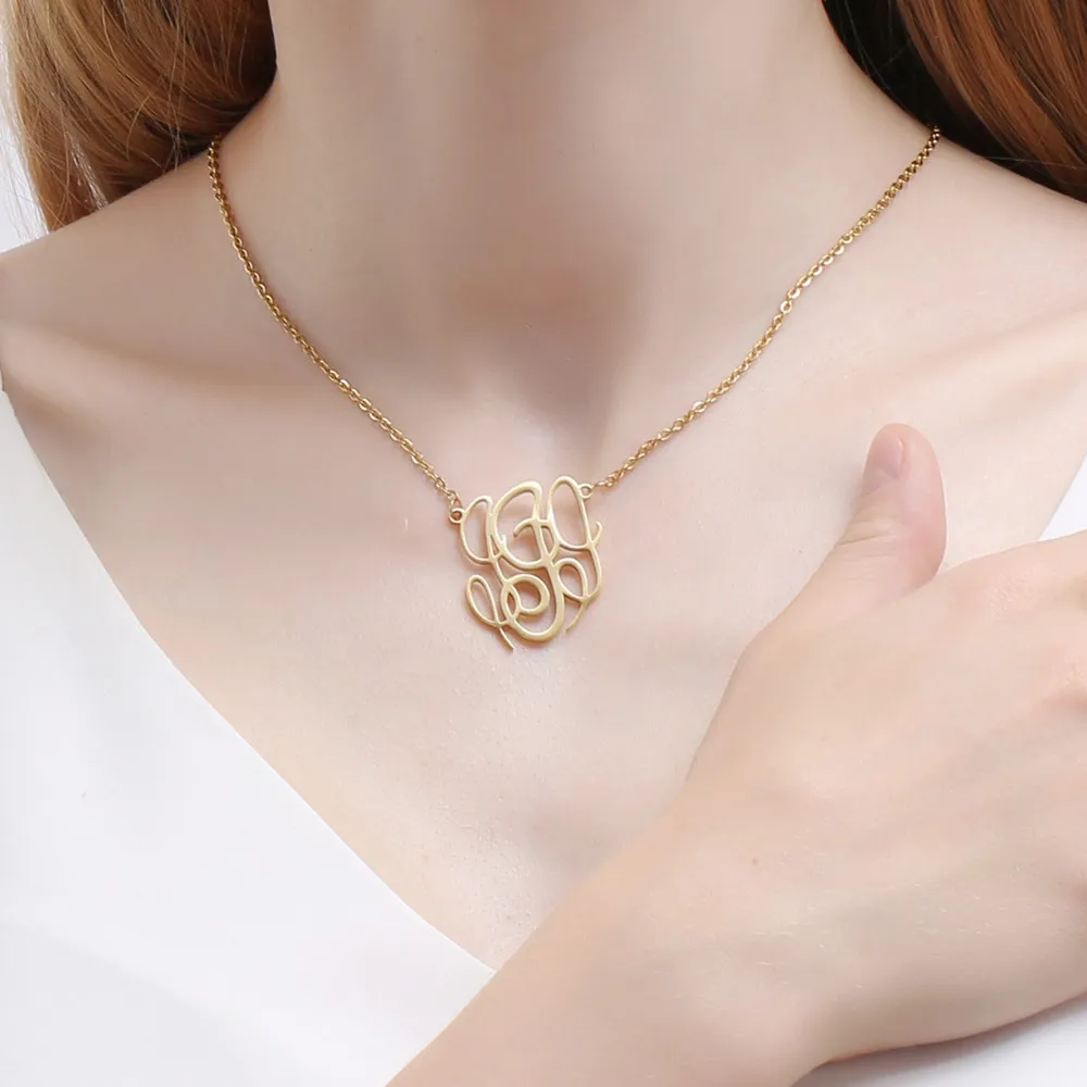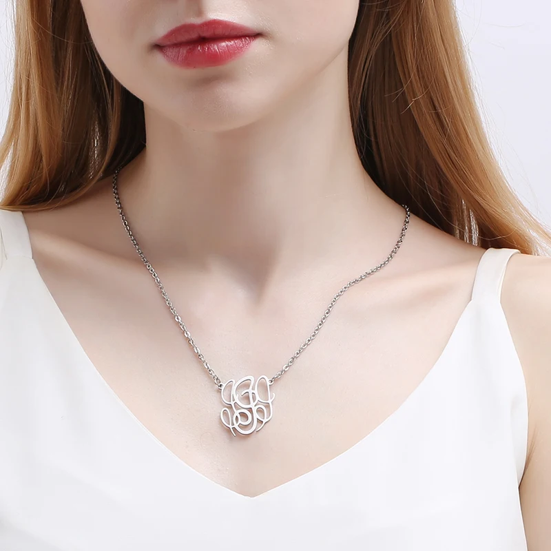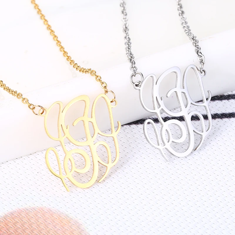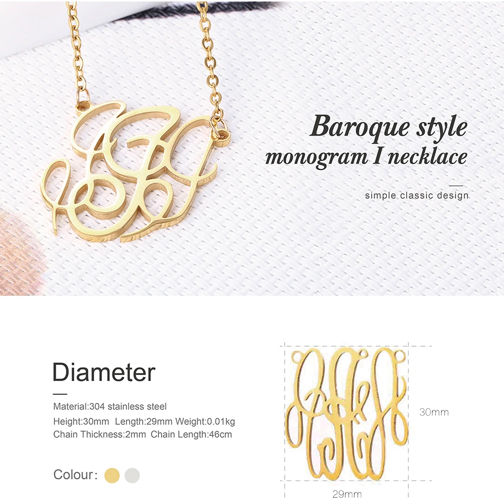 PolishedPlus Customized necklace letter I Baroque style Clavicle Chain simple hollow stainless steel for Women birthday gift