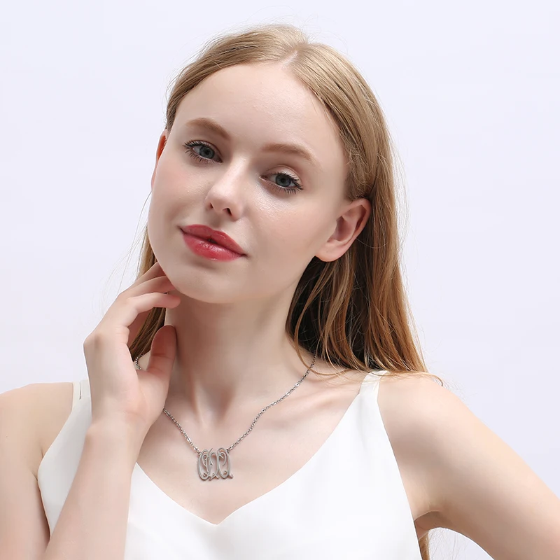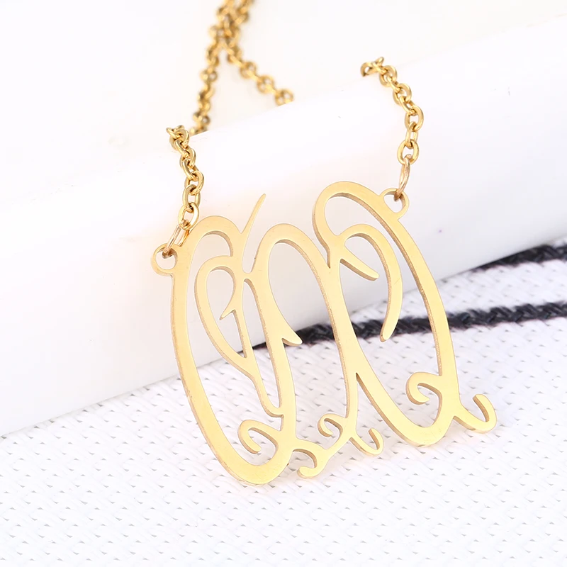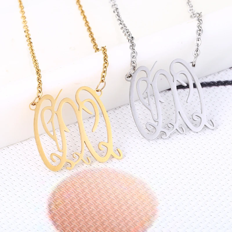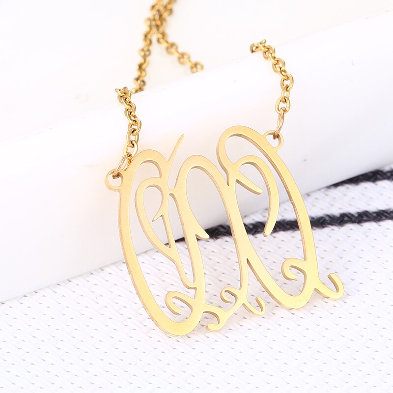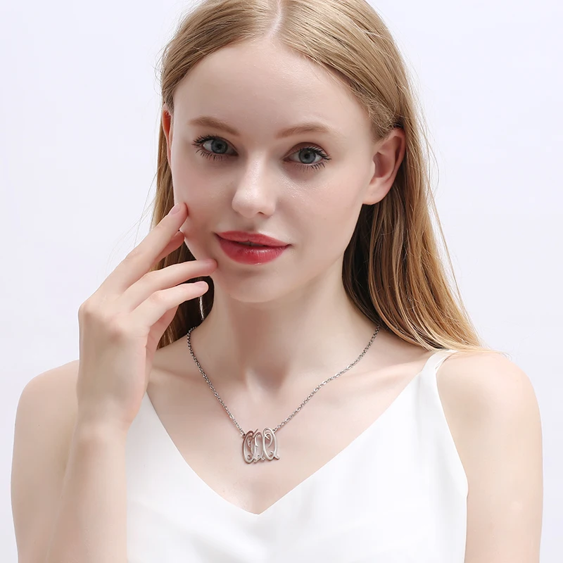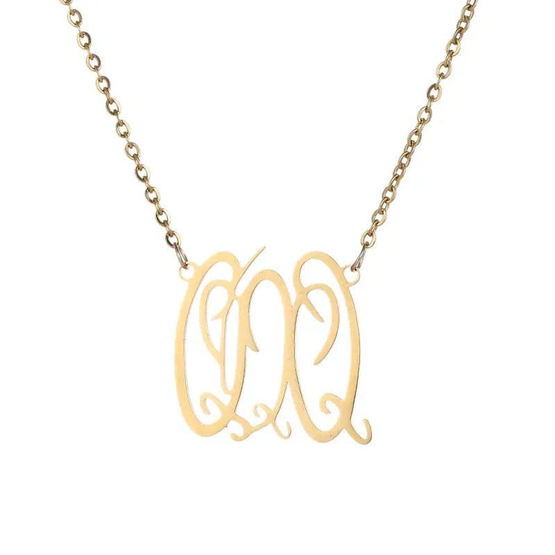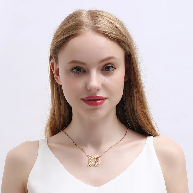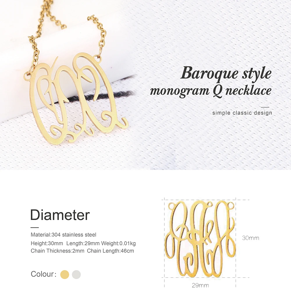 PolishedPlus Customized necklace letter Q Baroque style Clavicle Chain simple hollow stainless steel for Women birthday gift