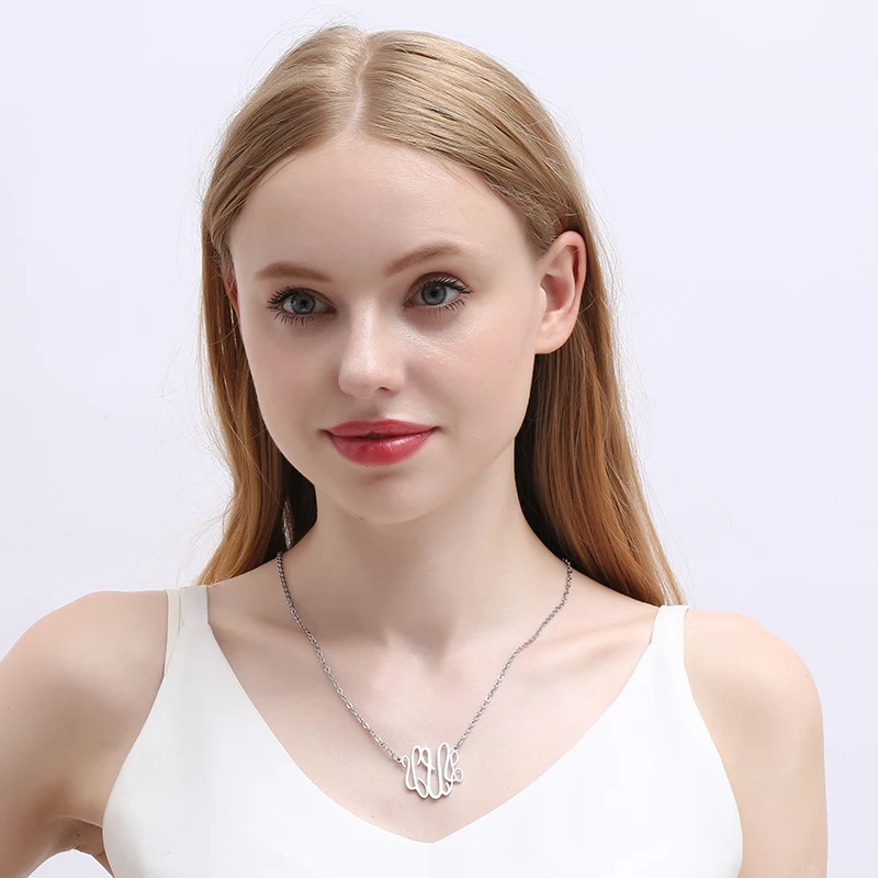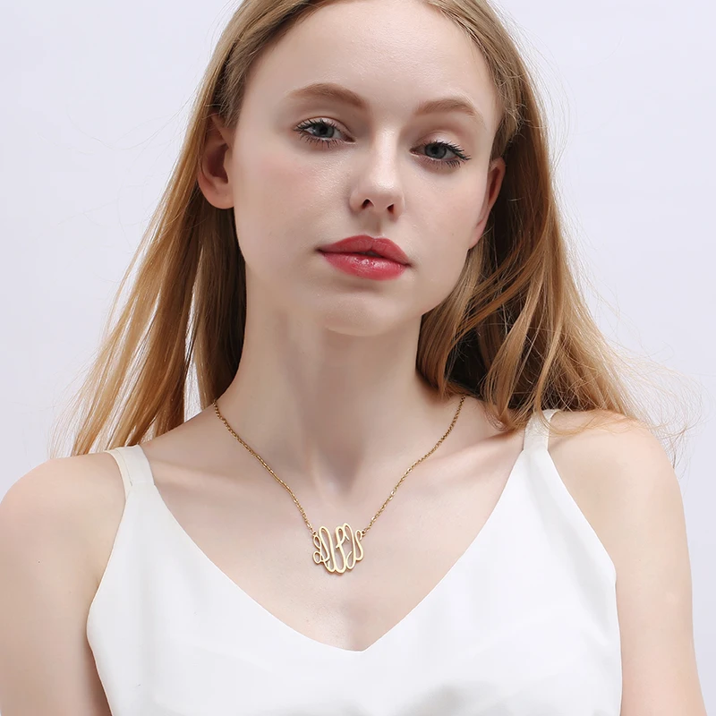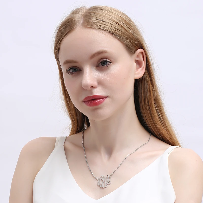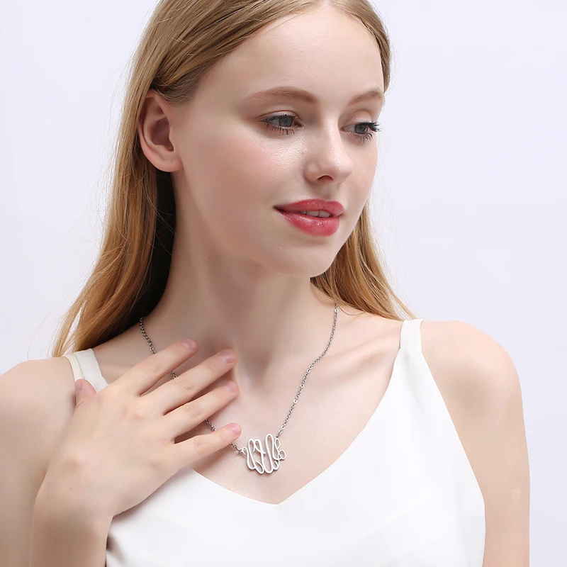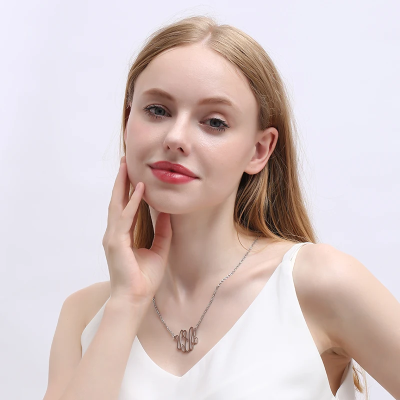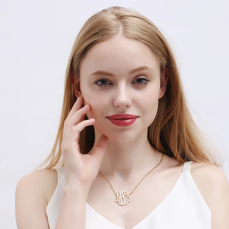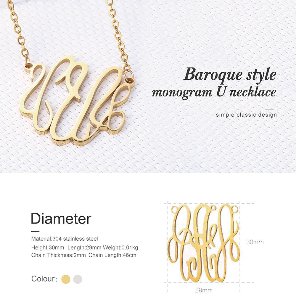 PolishedPlus Customized necklace letter U Baroque style Clavicle Chain simple hollow stainless steel for Women birthday gift