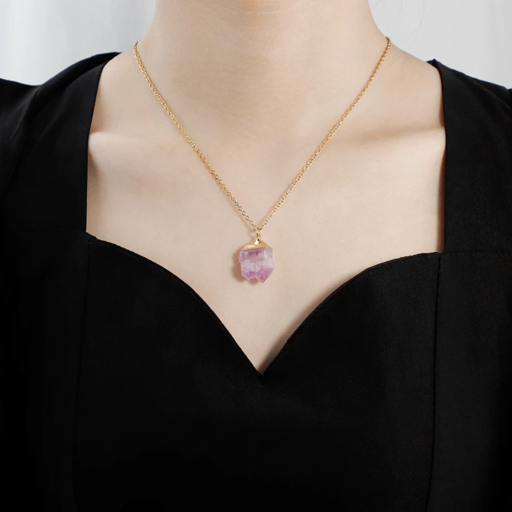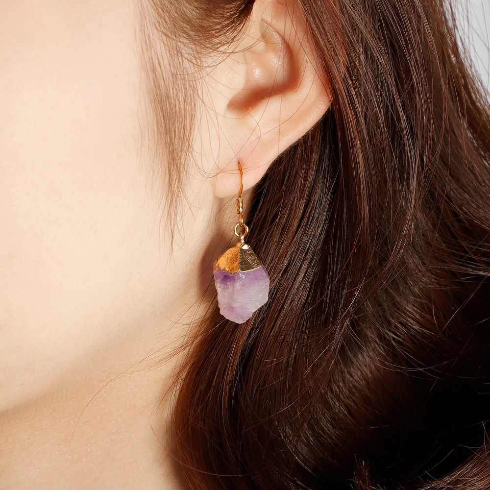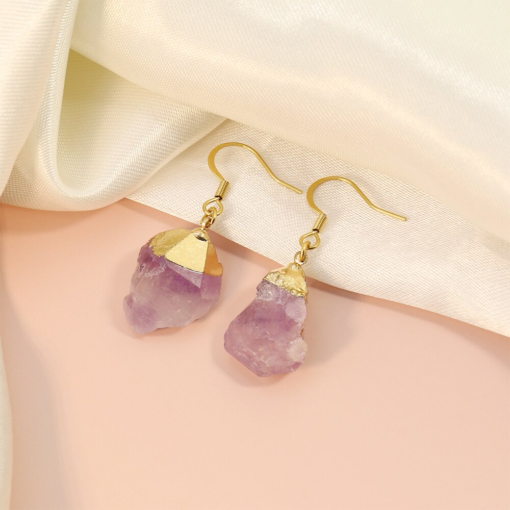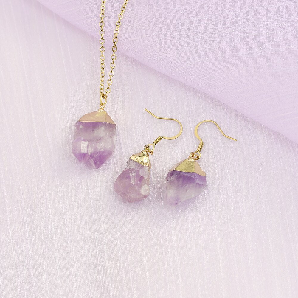PolishedPlus Trendy Irregular Raw Earring Natural Crystal Amethysts Druzy Healing Point Earrings Quartz Jewelry Necklace