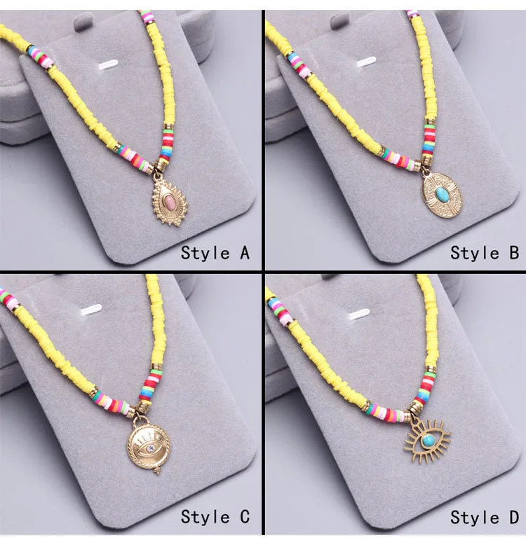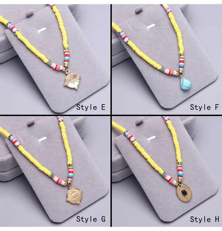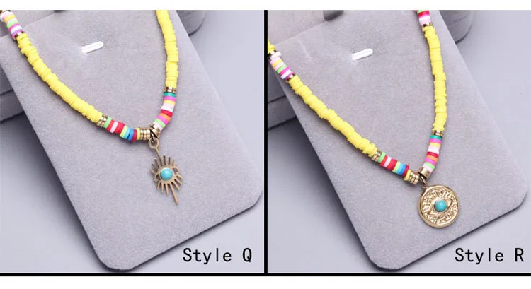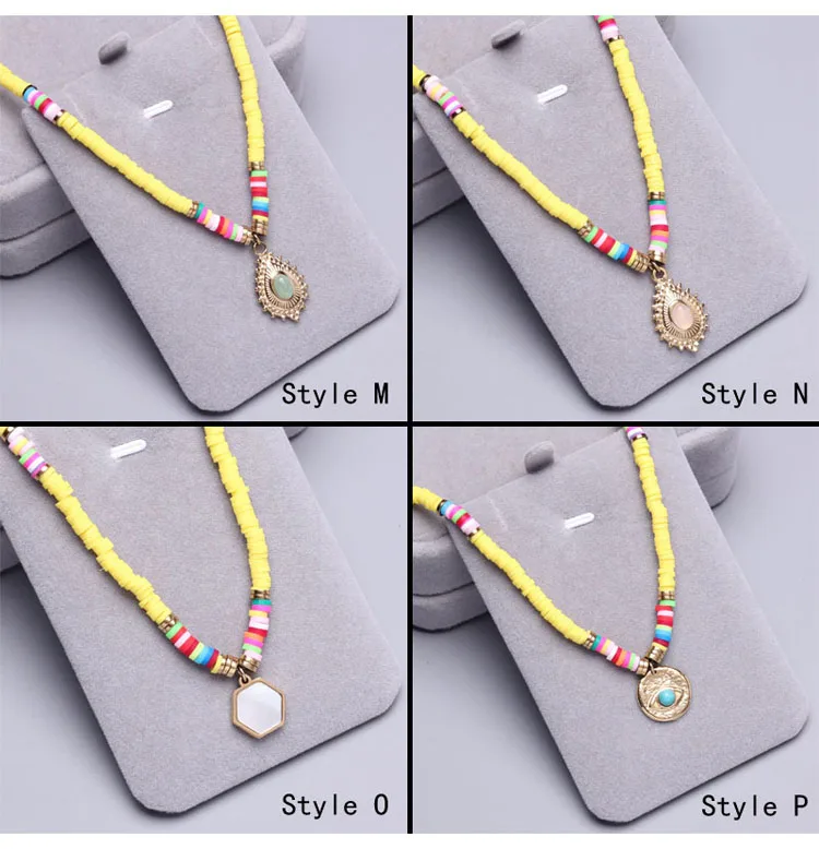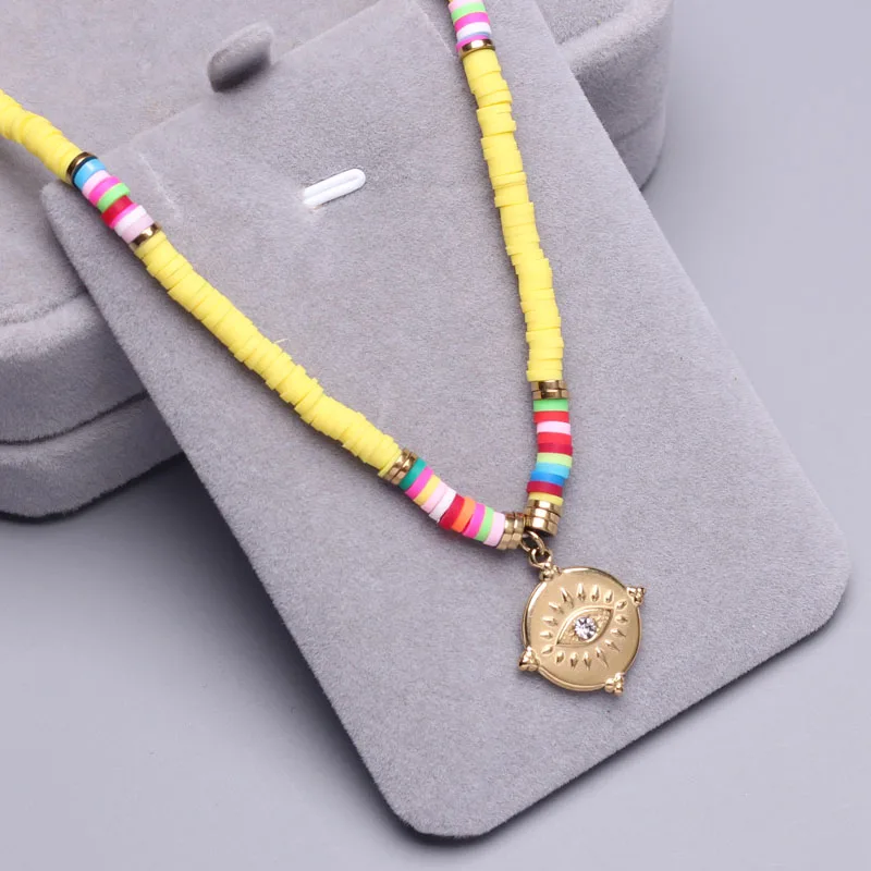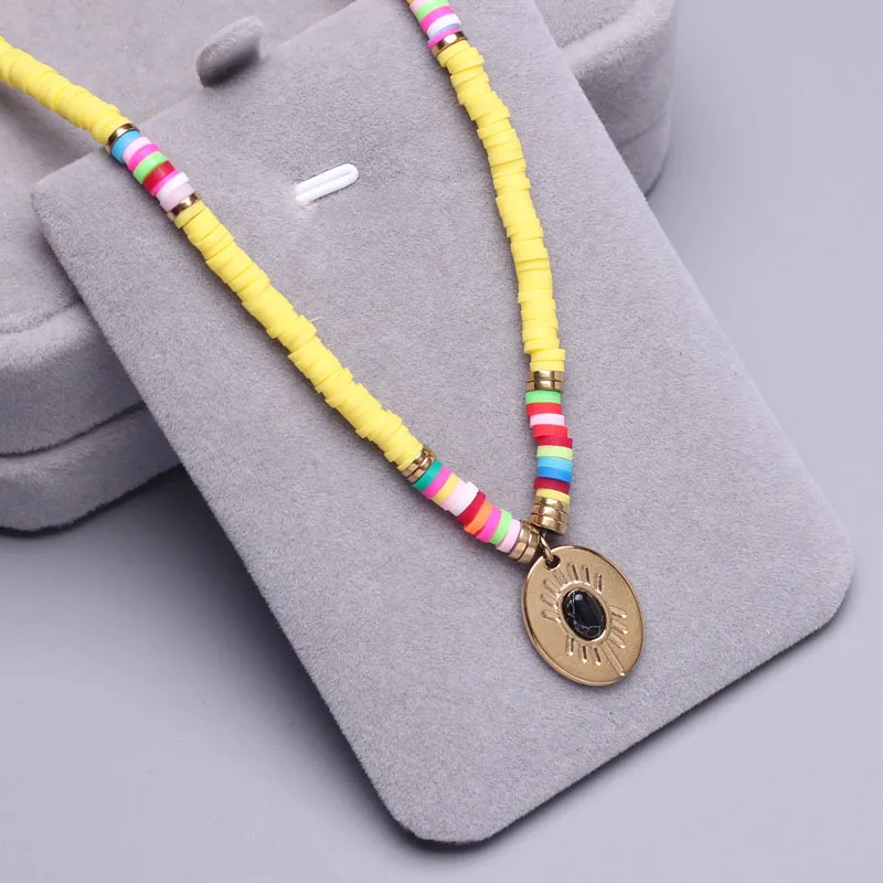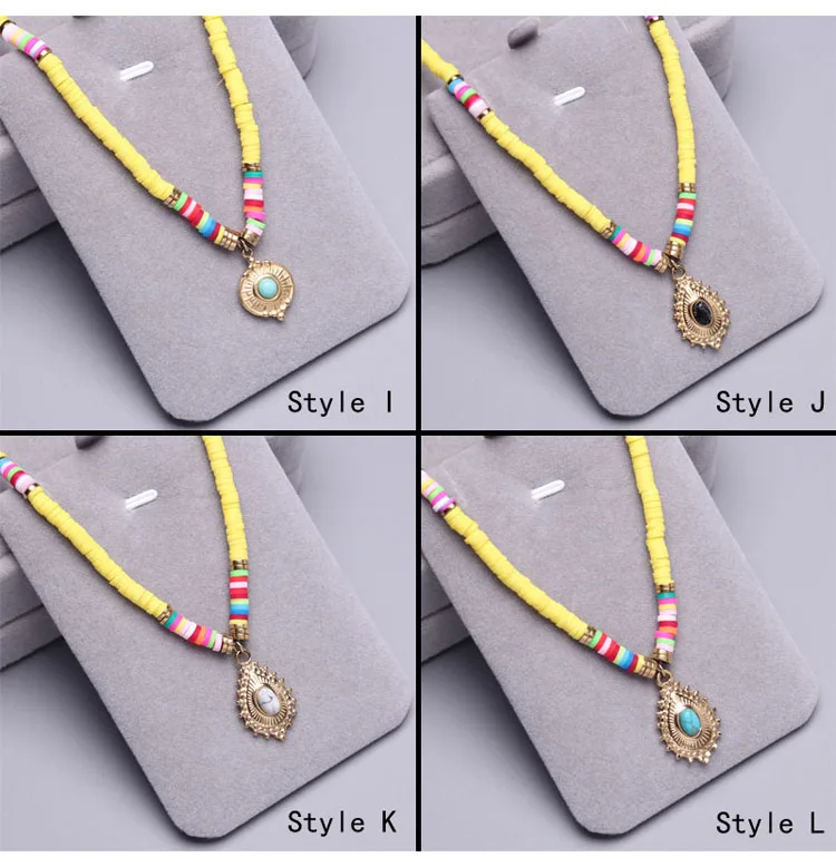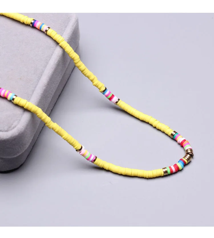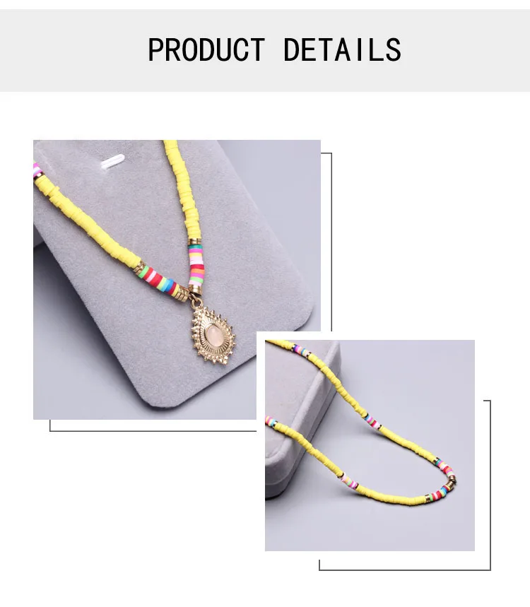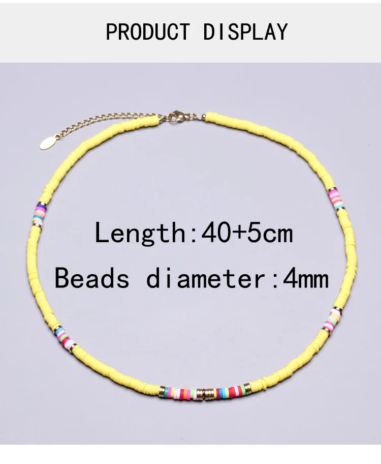Polymer Clay beads Chain Bohemian Necklace Soft Pottery Choker stainless steel Golden Pendant Colorful Handmade for Women Gift