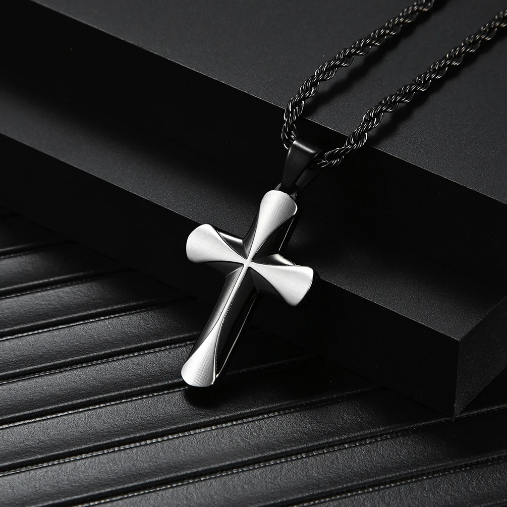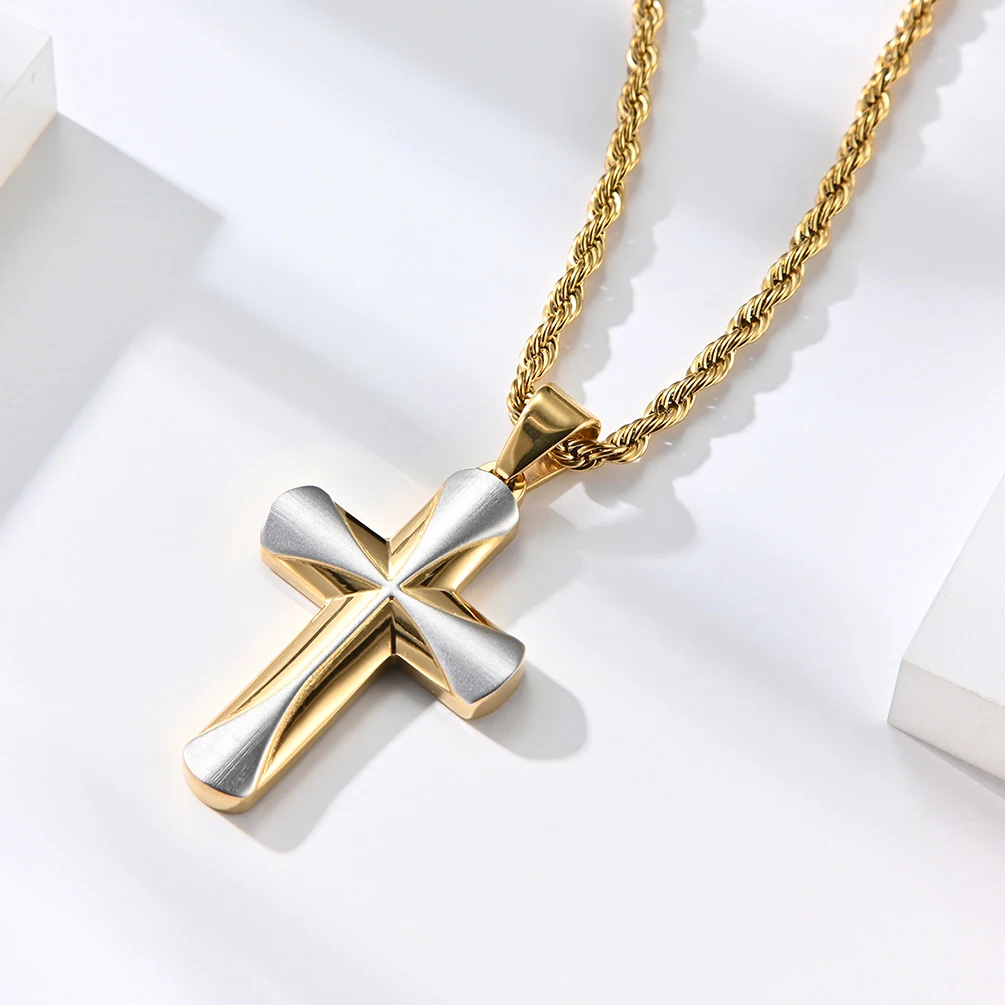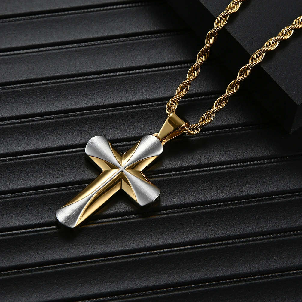 Premier Designs Jewelry Chain Religious Men's Stainless Steel Gold Color Contrast 3.8*2.5mm Cross Pendant Necklace
