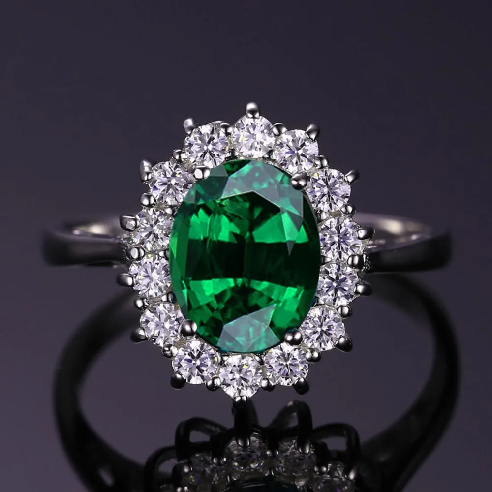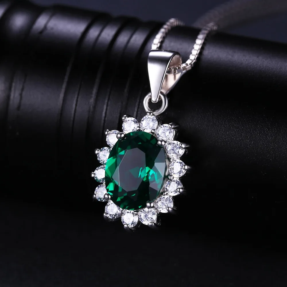 Princess Diana Jewelry Engagement Wedding Created Emerald Jewelry 925 Sterling Silver Ring Pendant Earring