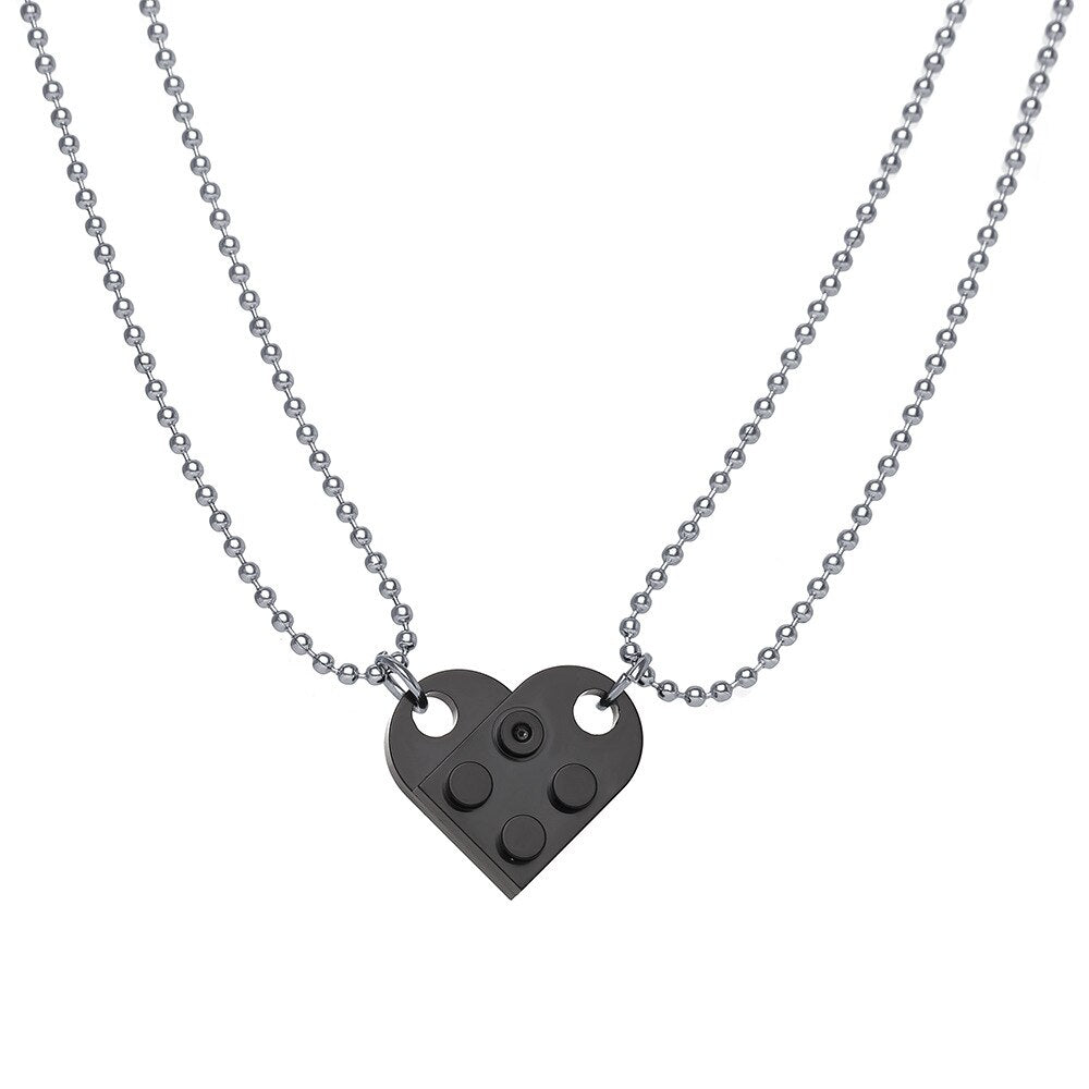 Punk 2 Pcs Heart Couples Love Necklace for Lovers Women Men Brick Lego Elements Friendship Necklaces Valentines Jewelry Gifts
