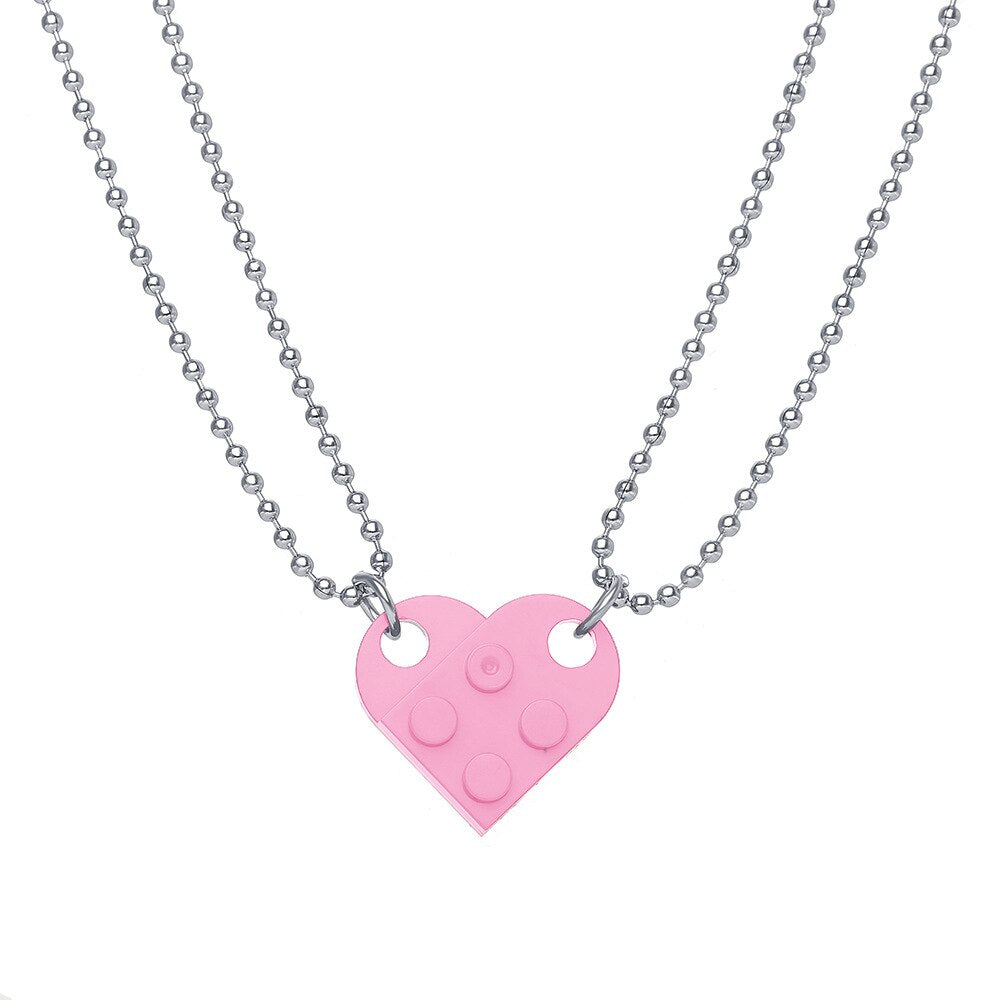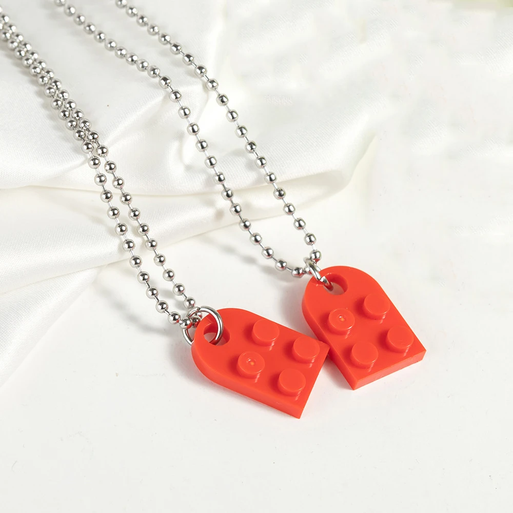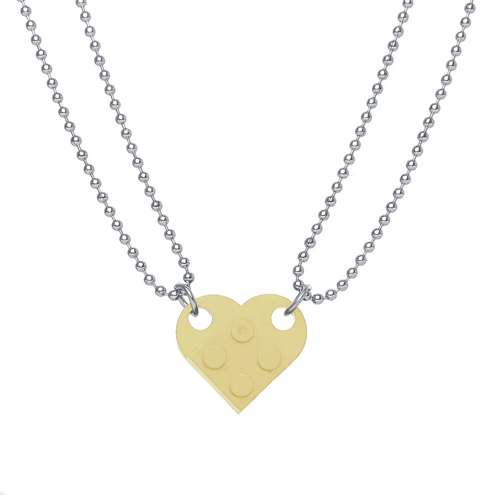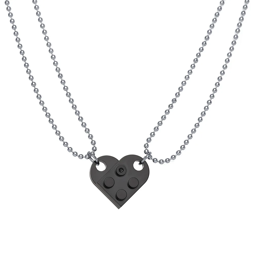 Punk 2Pcs Heart Brick Couples Love Necklace For Lovers Women Men Elements Friendship Necklaces Valentines Gift Jewelry