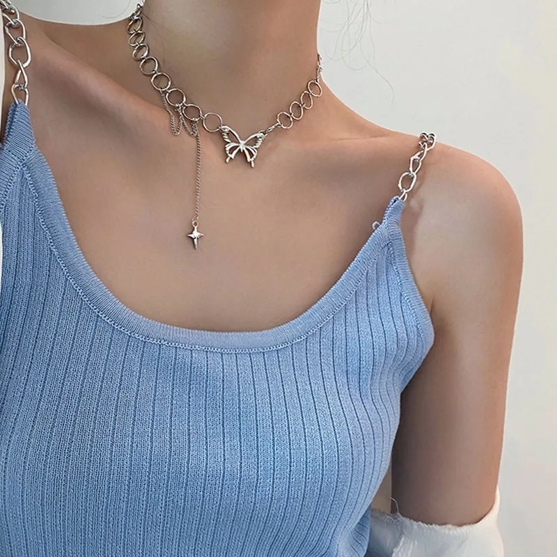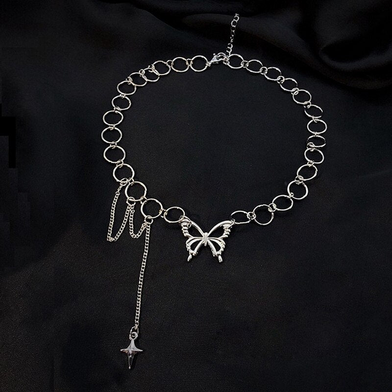 Punk Butterfly Choker Necklace Women Collares Gothic Hip Hop Stainless Steel Chain Star Pendant Necklace Mujer Jewlery