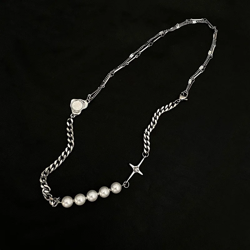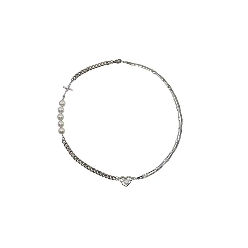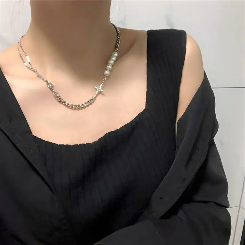 Punk Choker Necklace Collar Statement Hip Hop Cross Heart Pearls Chain Couple Necklace for Women Men Jewelry Gift