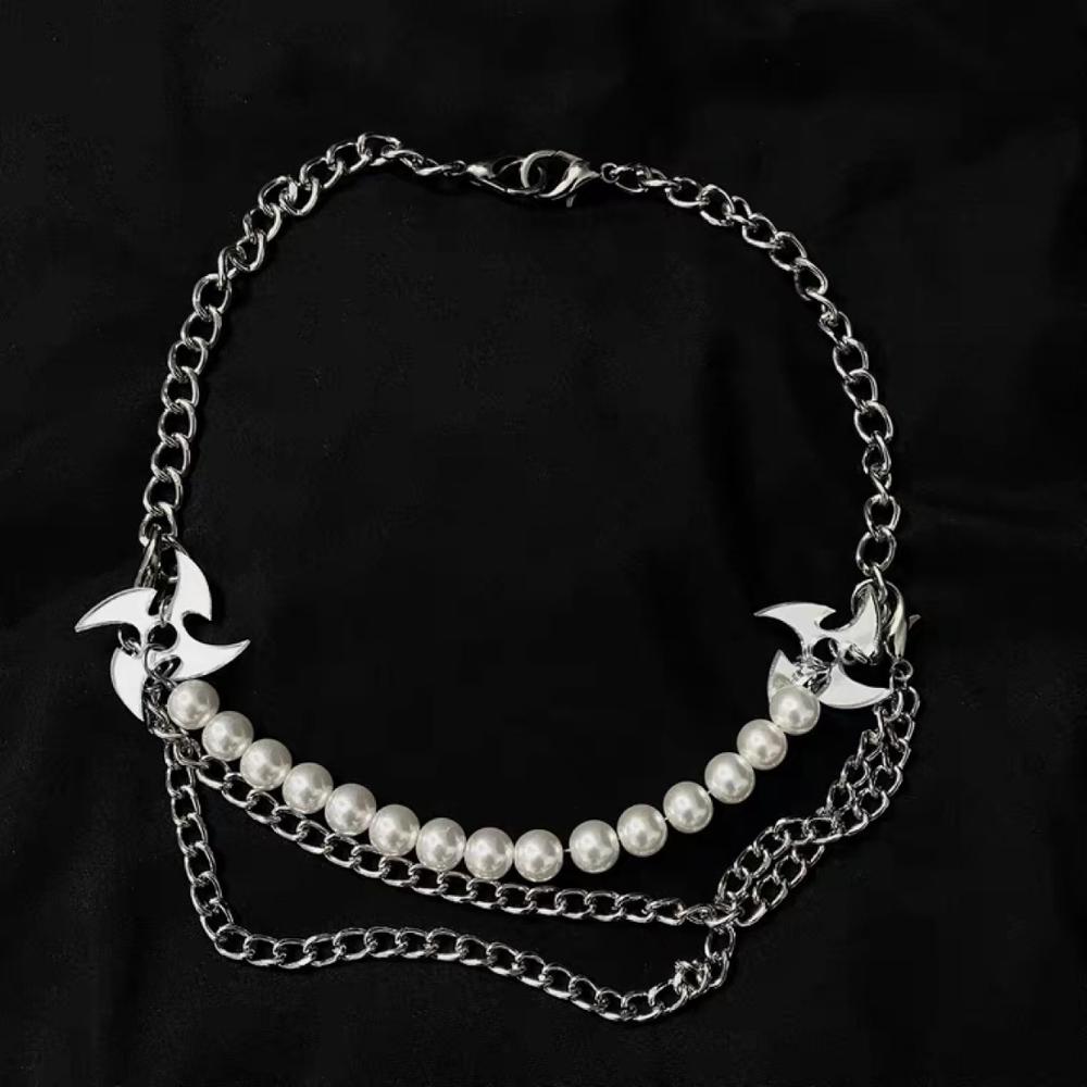 Punk Darts Pearl Cuban Multilayer Choker Necklace For Women Girl Hip Hop Cool Ninja Icon Pendant Necklace Trendy Jewelry 2021