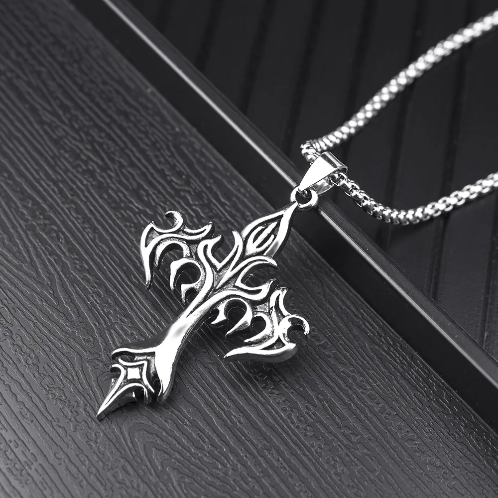 Punk Flame Cross Pendant Chain Necklace for Men Female Hip Hop Rock Gothic Style Gift Accessries