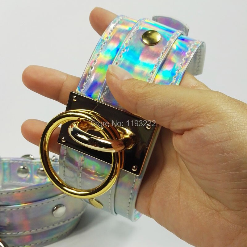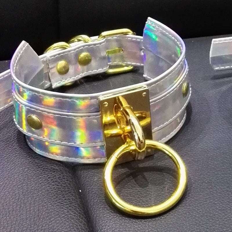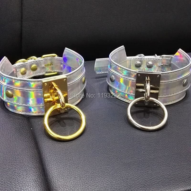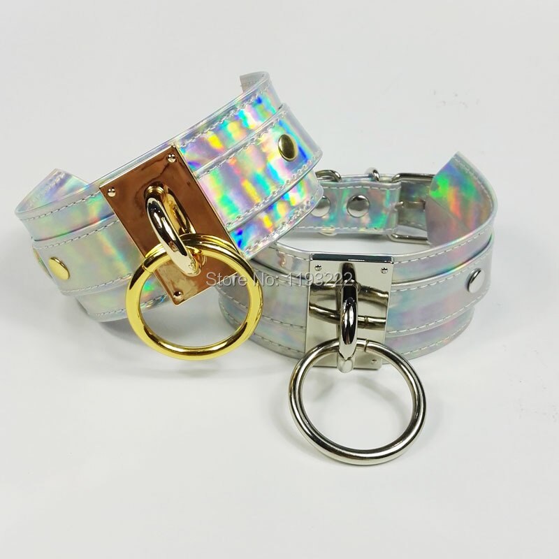 Punk Gothic 100% Handcrafted Chic Holographic Choker O Round Gold Metal Laser Collar BDSM Sub Slave Necklace