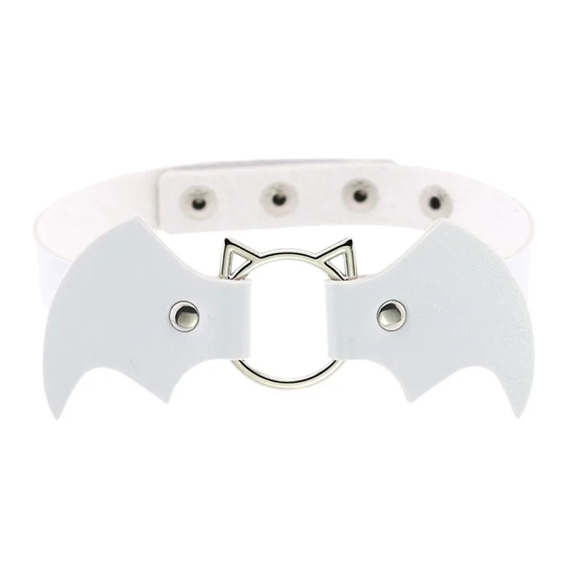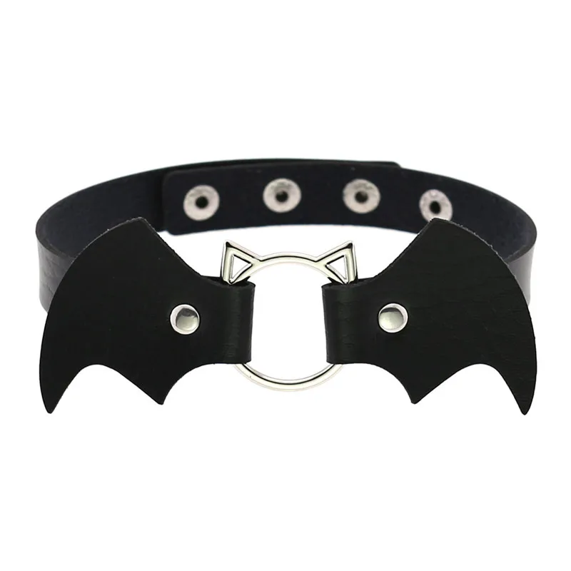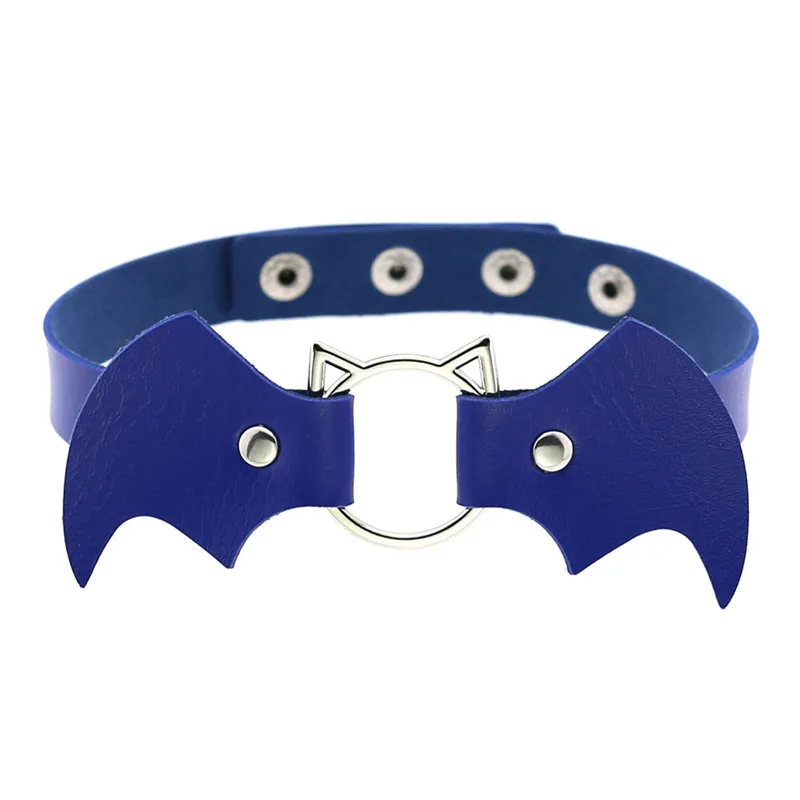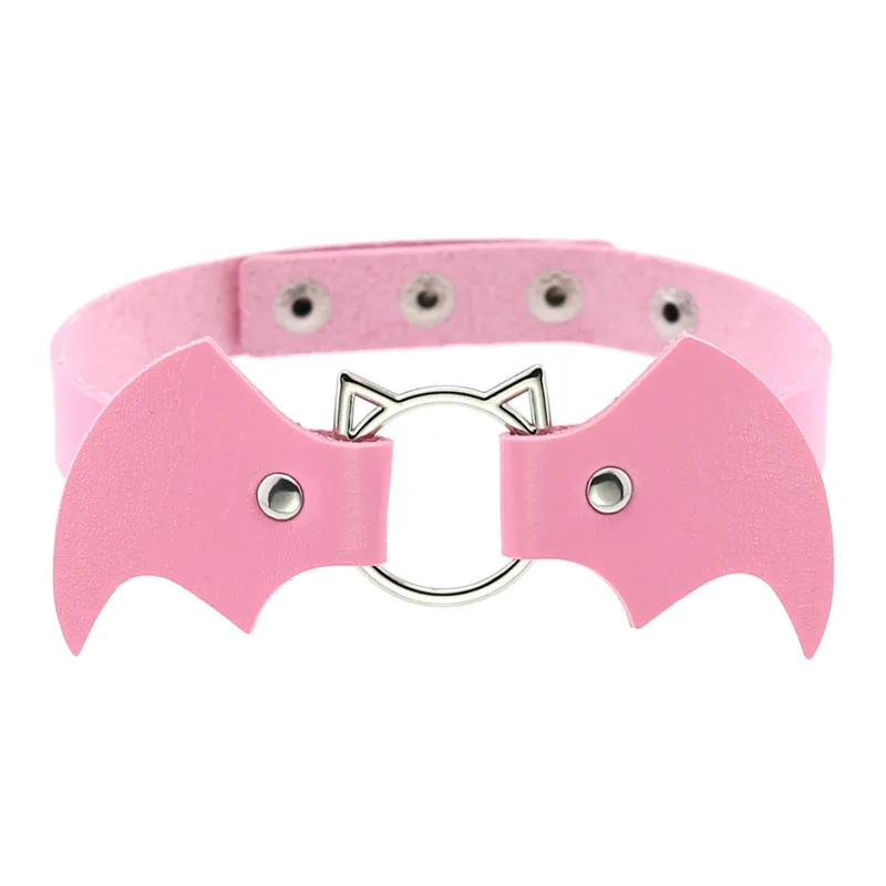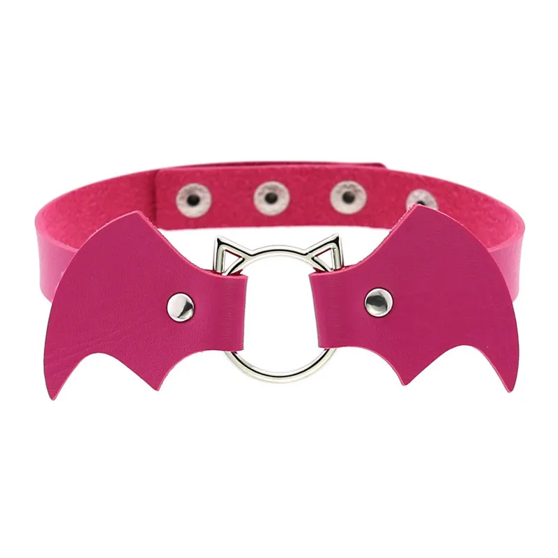 Punk Gothic Cosplay Black Pink PU Leather Bat Choker Necklace For Women Men Statement Necklaces Jewelry Halloween gift