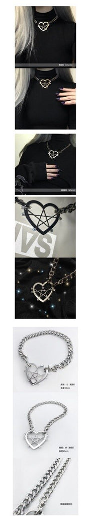 Punk Heart Necklace Charms Retro Hip Hop Jewelry For Women Harajuku Gothic Choker Chains Accessories
