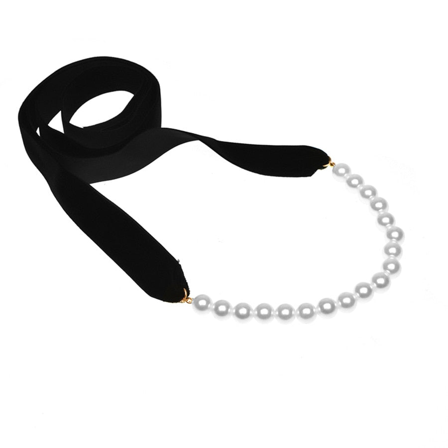 Punk Long Wide Black Velvet Ribbon Choker Bow Tie Simulated Pearl Beads Charm Collar Necklace Gothic Jewelry Year Gifts