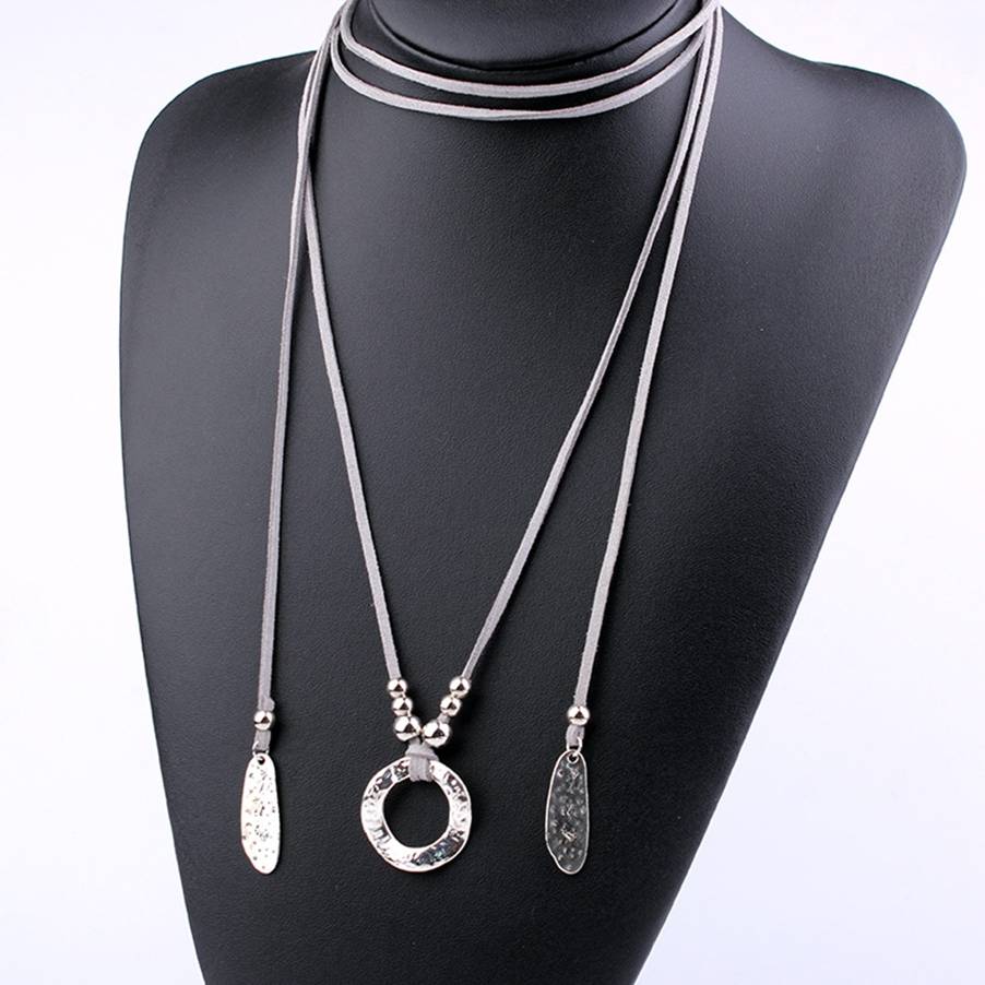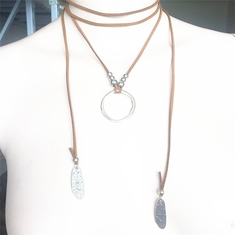 Punk Multilayer Velvet Choker Necklace Leather Collar Statement Circle & Leaves Pendant Necklace For Women Jewelry