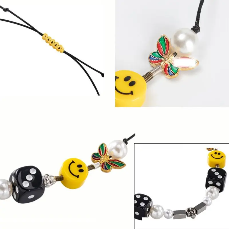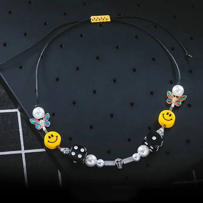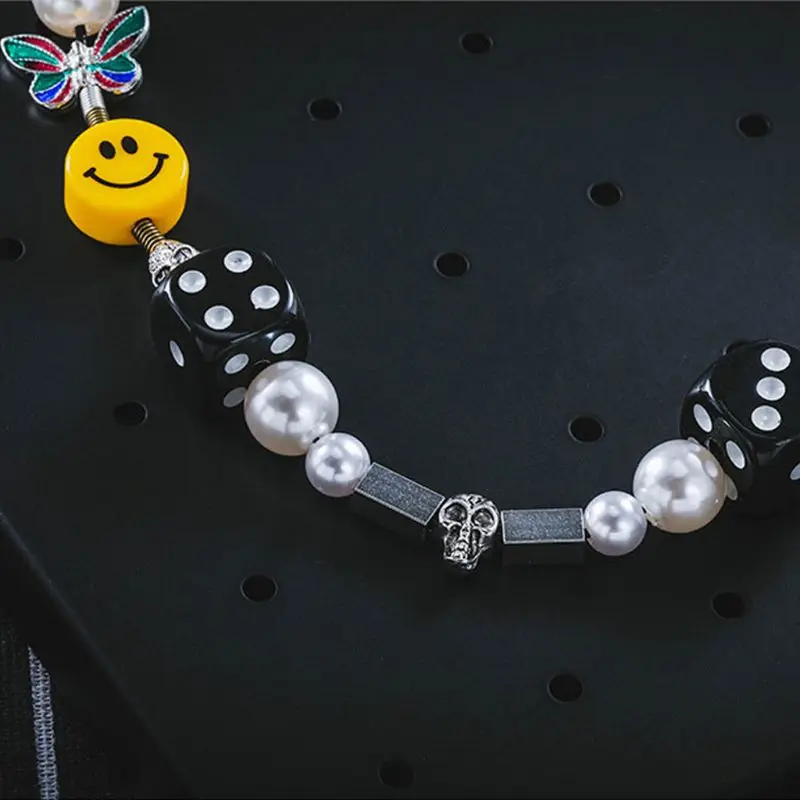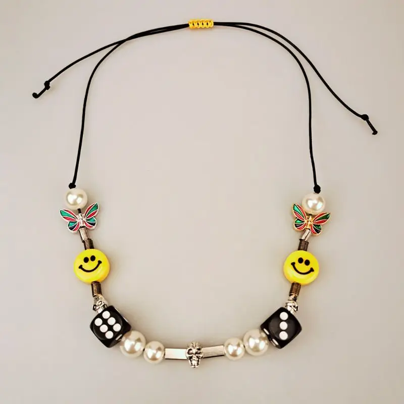 Punk Rock Pearl Smiley Skull Rope Adjustable Choker Lucky Dice Beaded Necklaces Punk Streetwear Jewelry Unisex