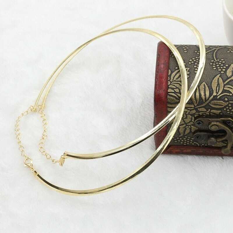 Punk Simple Round Circle Necklace Gold Bohemian Jewelry Exaggeration Metal Hoop Adjustable Necklaces for Women