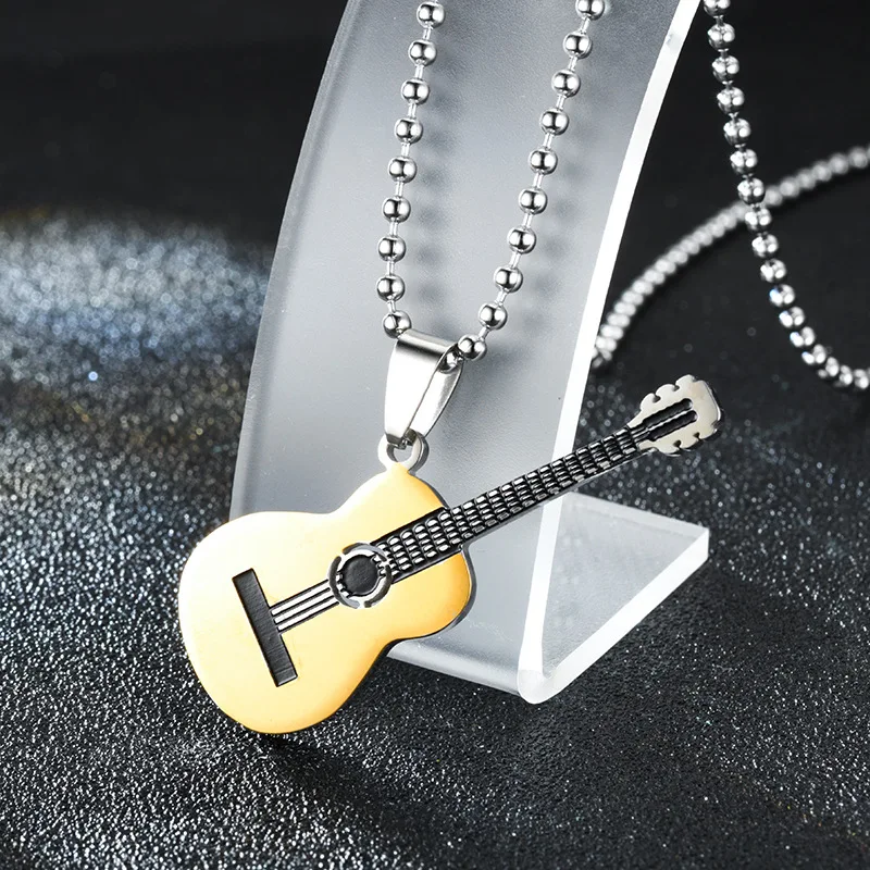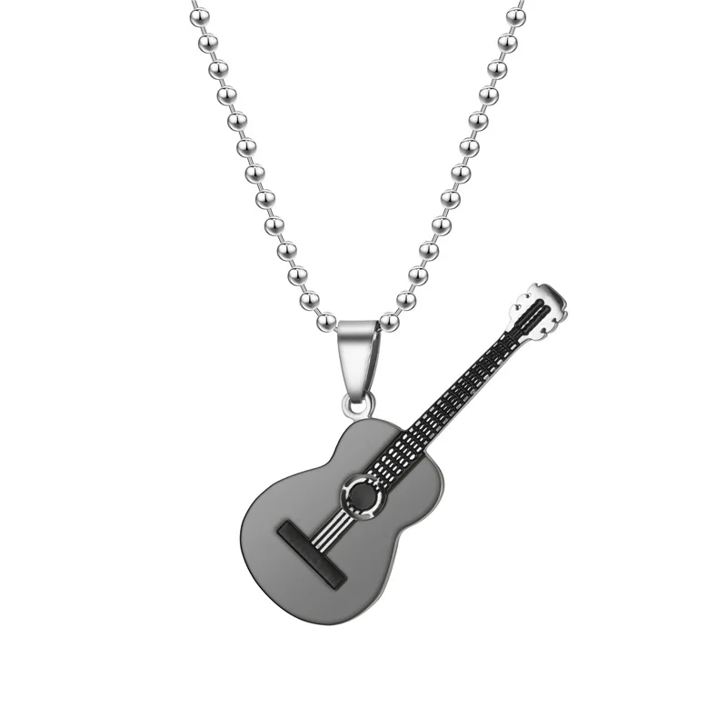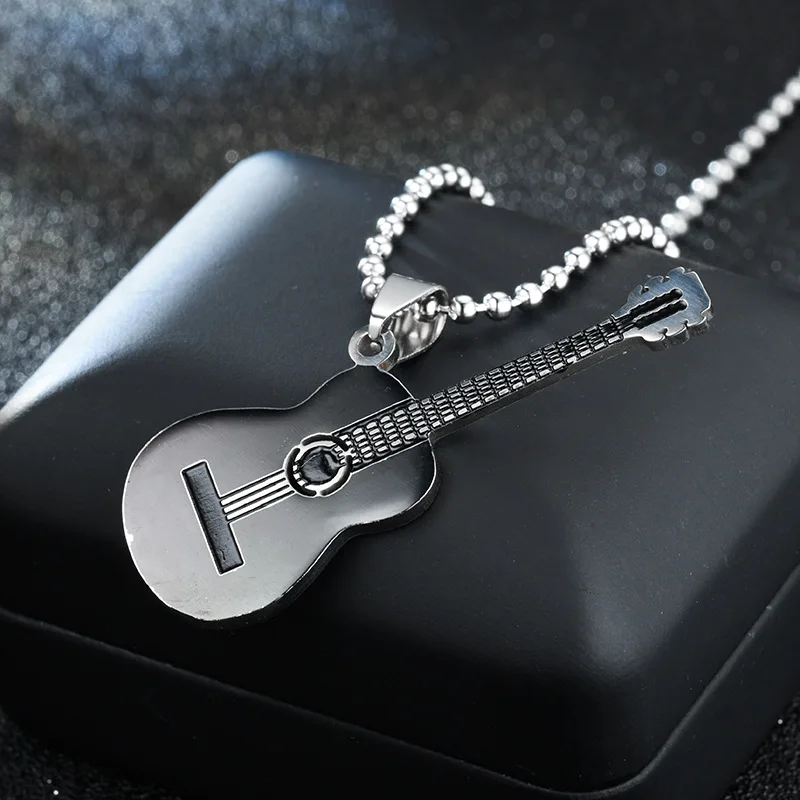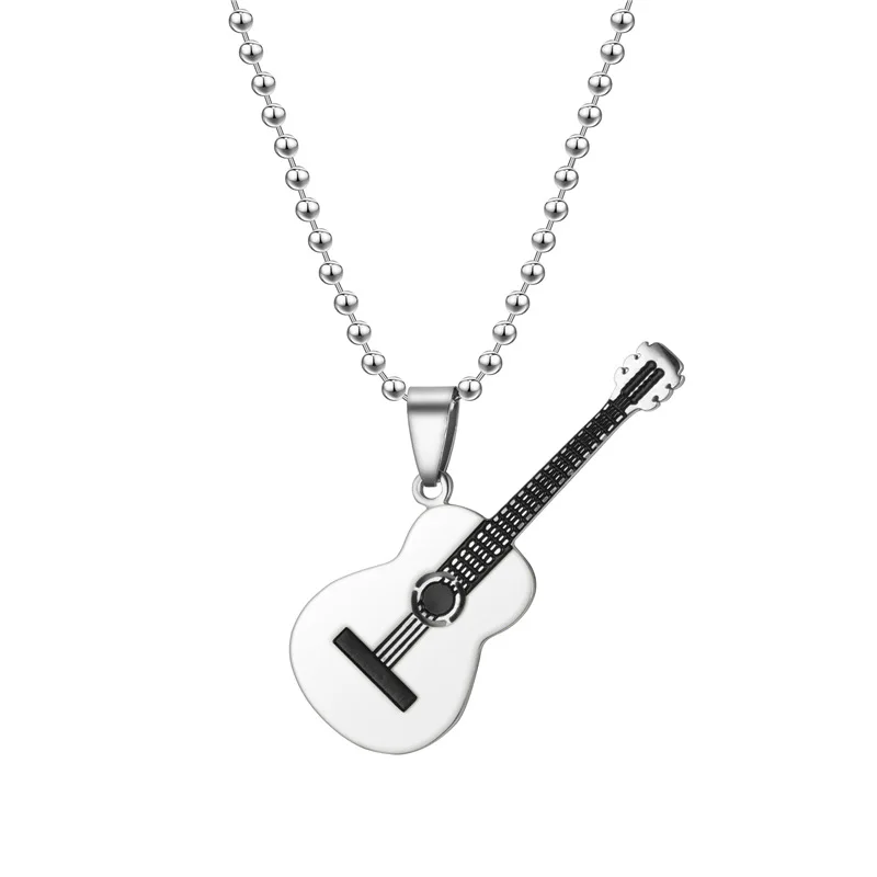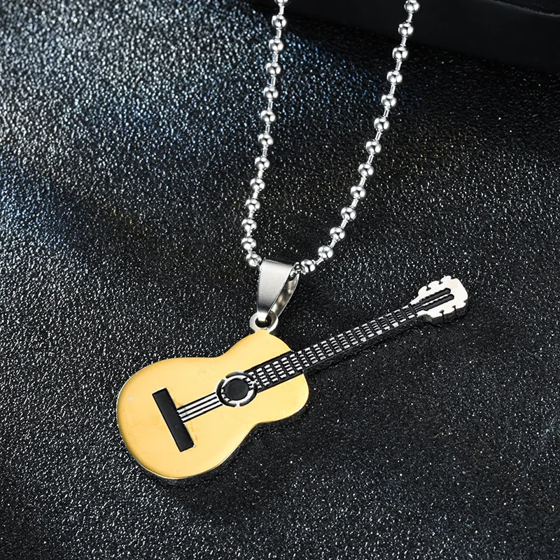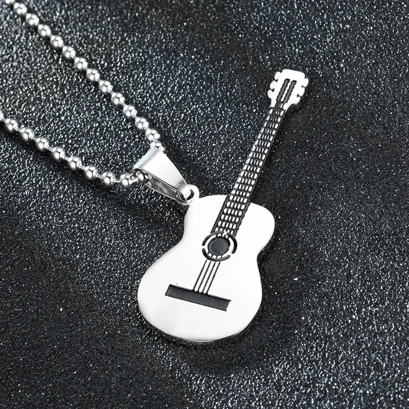 Punk Stainless Steel Guitar Pendant Necklace Beaded Chain Necklaces Unisex Hip Hop Personality Party Jewelry