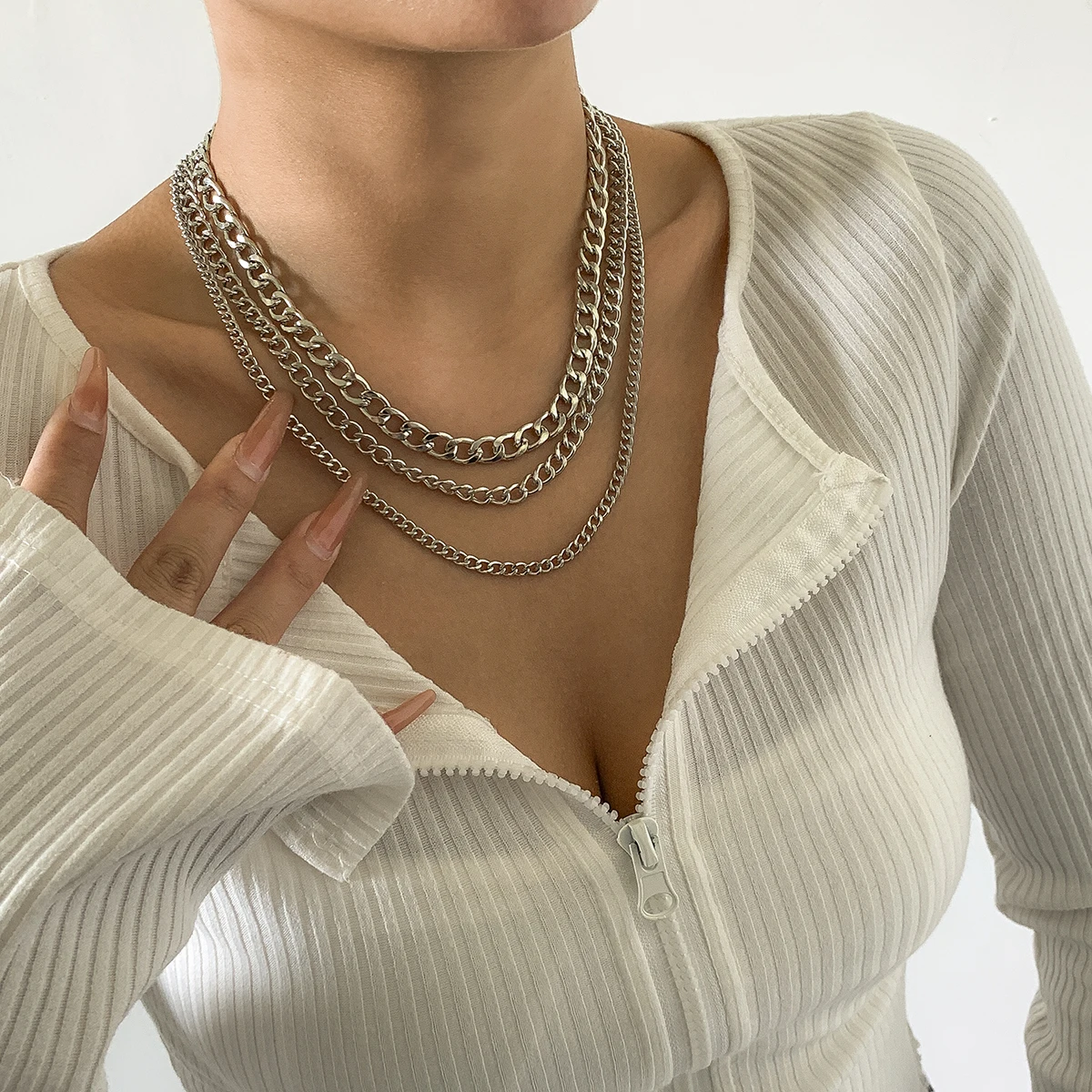 Punk Thick Links Chains Necklace on the Neck Hip Hop Layered Choker Necklaces for Women Men's Necklaces Set 2021 Jewelry
