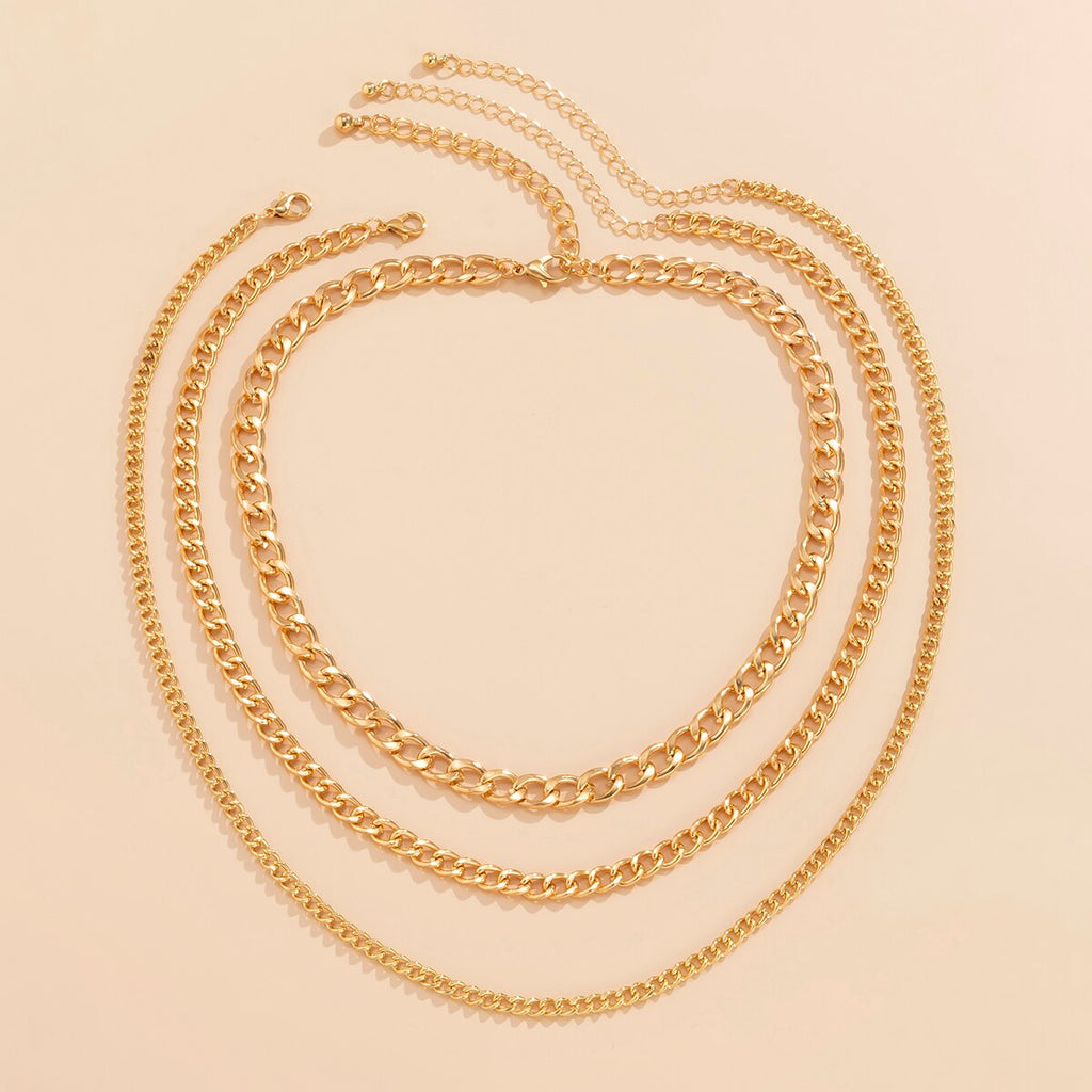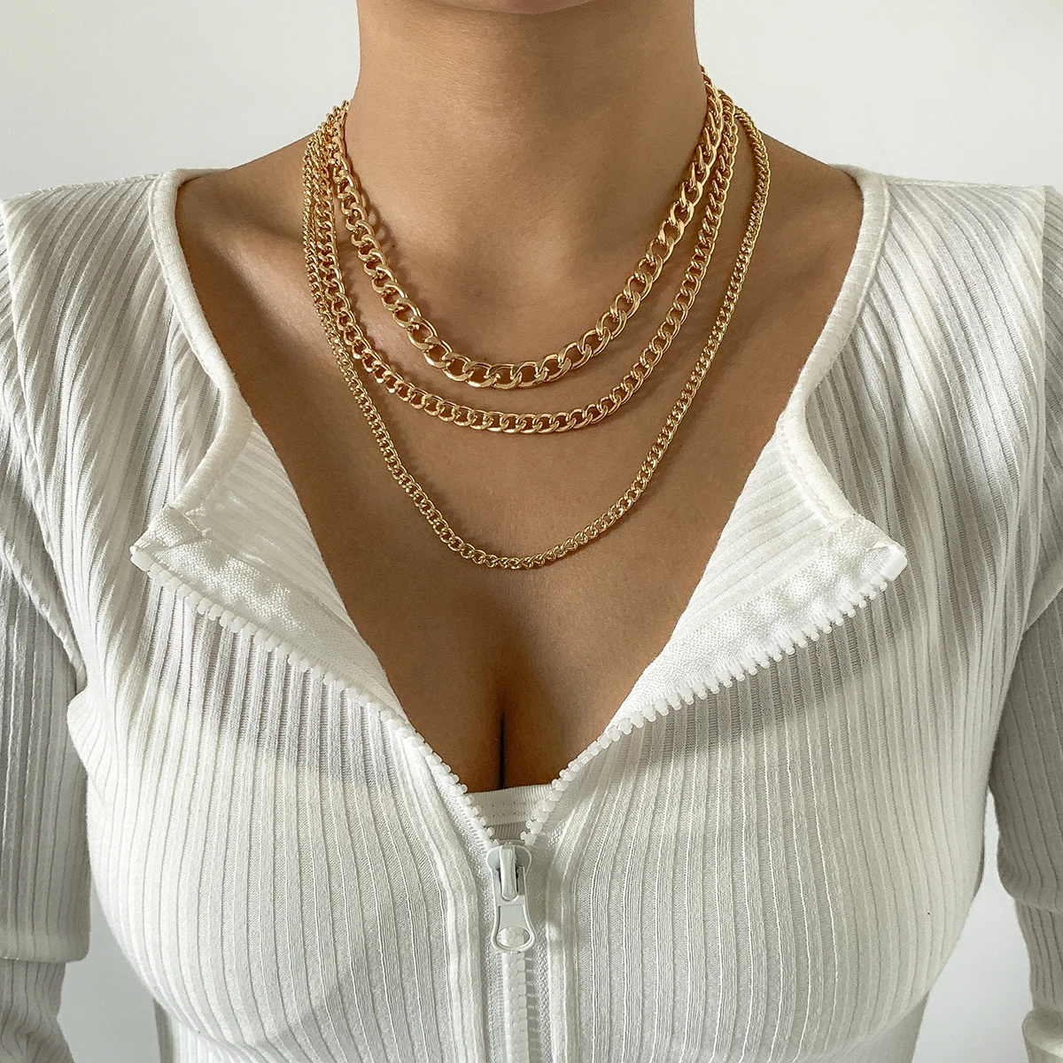 Model Number : Layered Thick Links Chains Necklace on the Neck