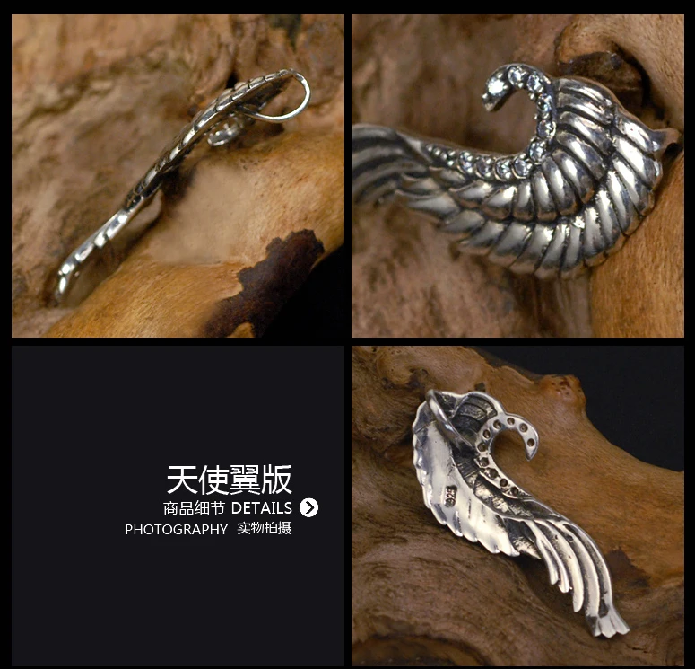 Pure 925 Sterling Silver Jewelry Wing Charms Punk Pendants for Men And Women Thai Silver Necklace Chain Fine Gift 1325