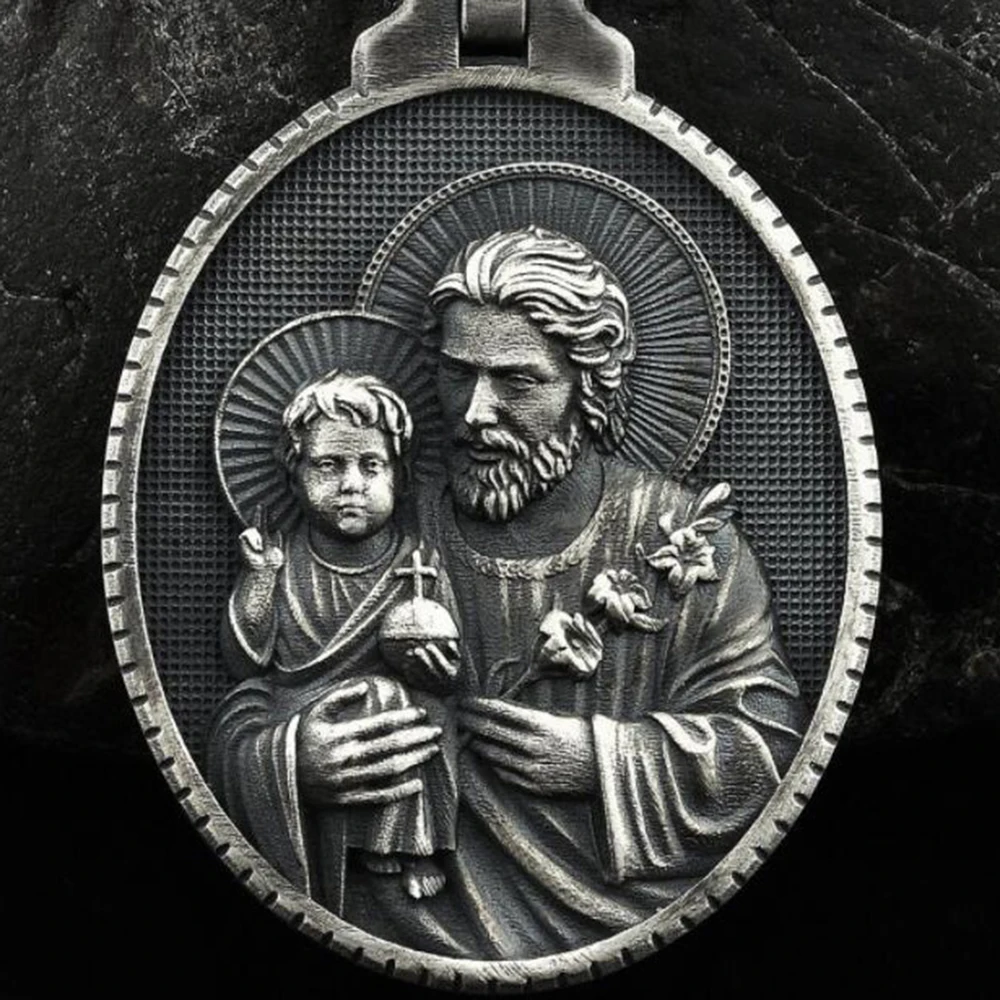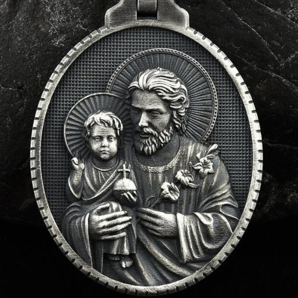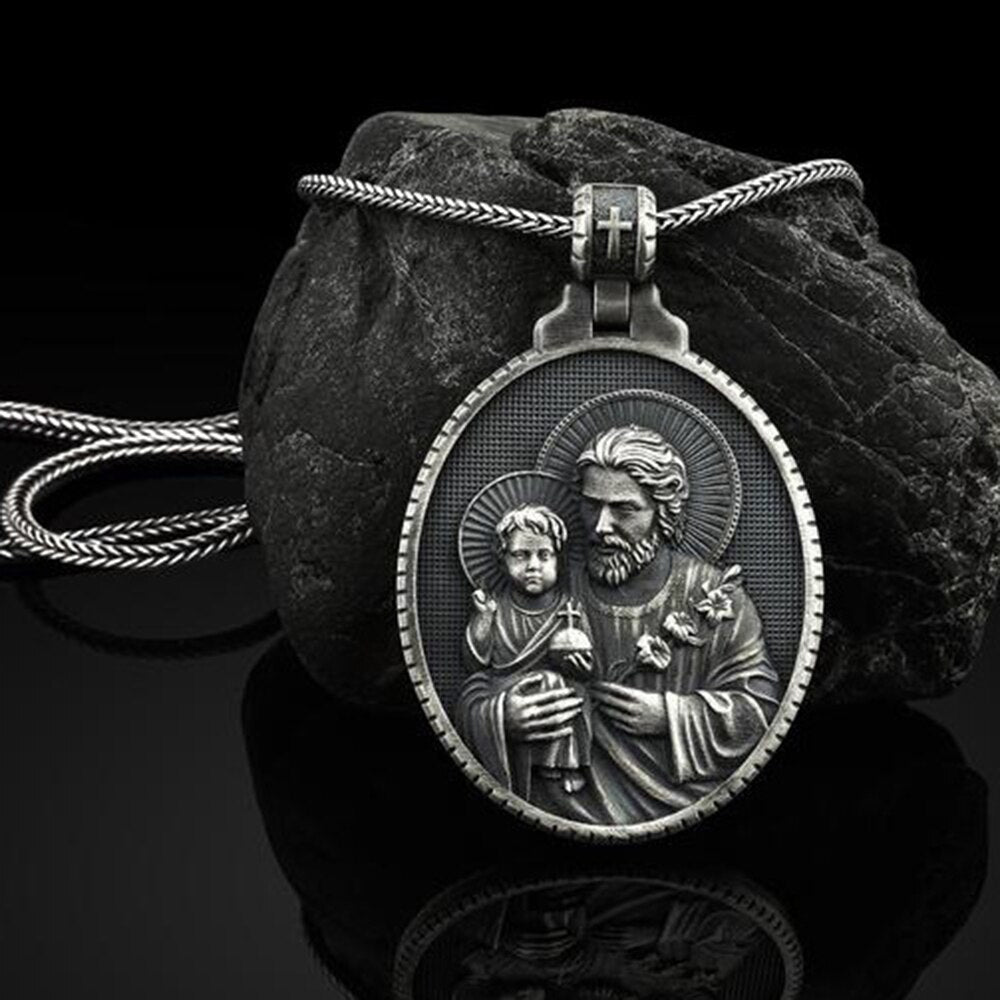 Pure Tin Religion Christian Joseph Hug Jesus Retro Style Saint Joseph Pendant Necklace Catholic Pendants Necklace For Women Men