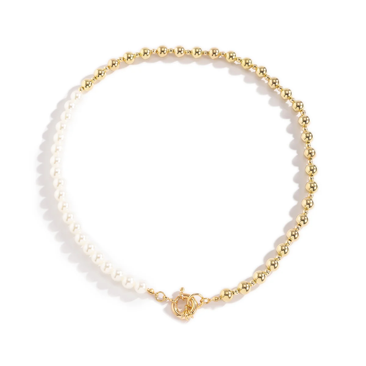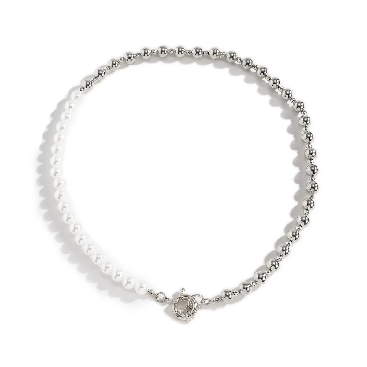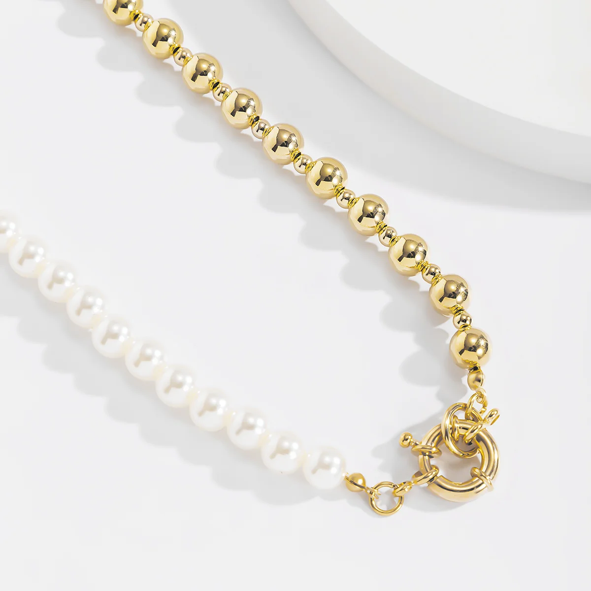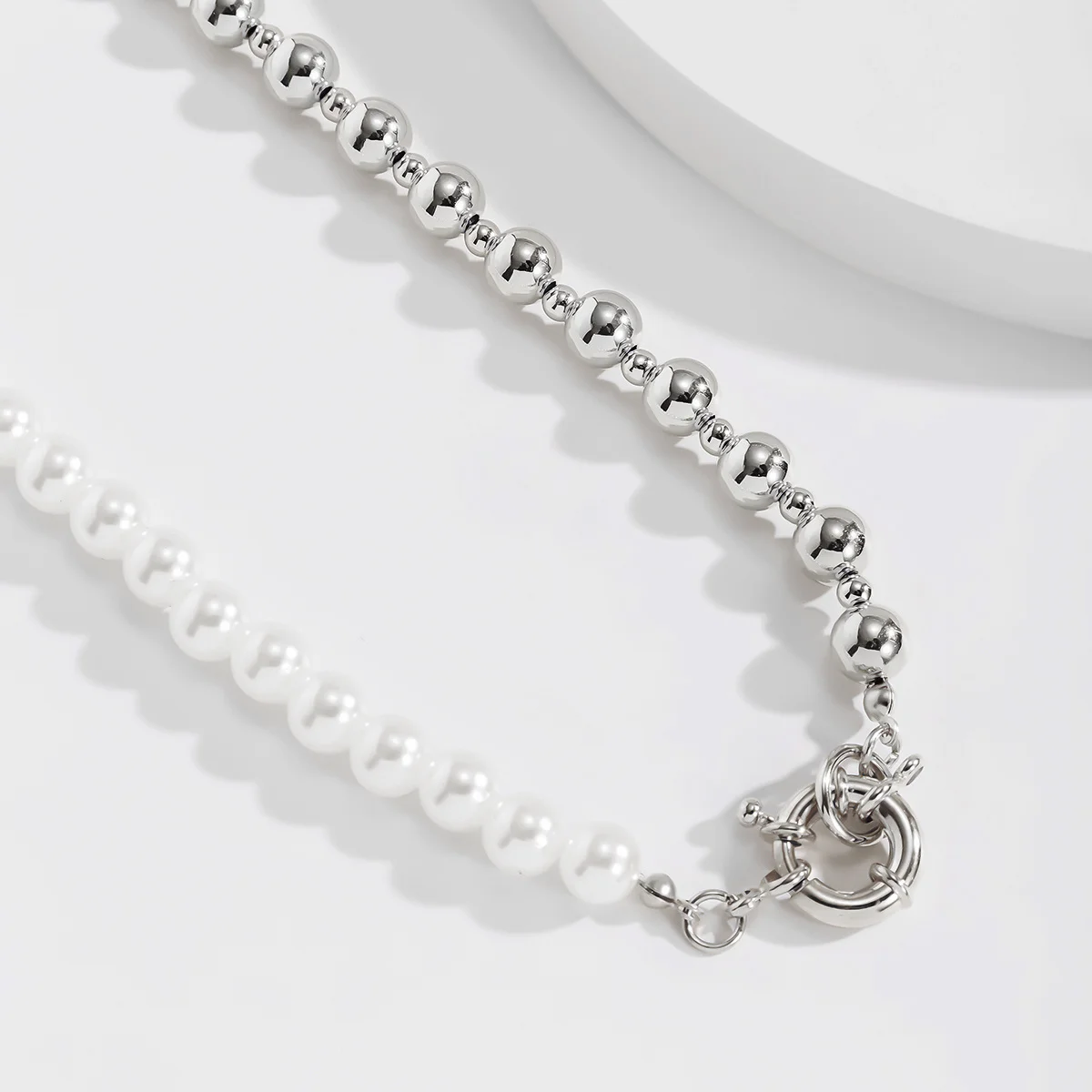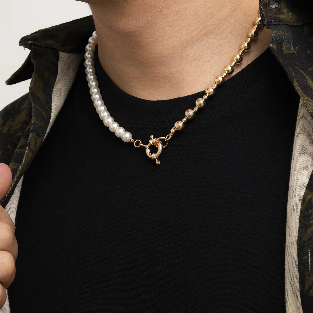 Color : White Pearl Gold/Silver Color Beads Necklace Men/Women