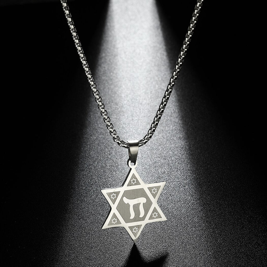 QIMING Star Of David Pendant Necklace Men Women Hexagram Chai Jewish Dainty Jewelry Stainless Steel Necklace Chokers Gift