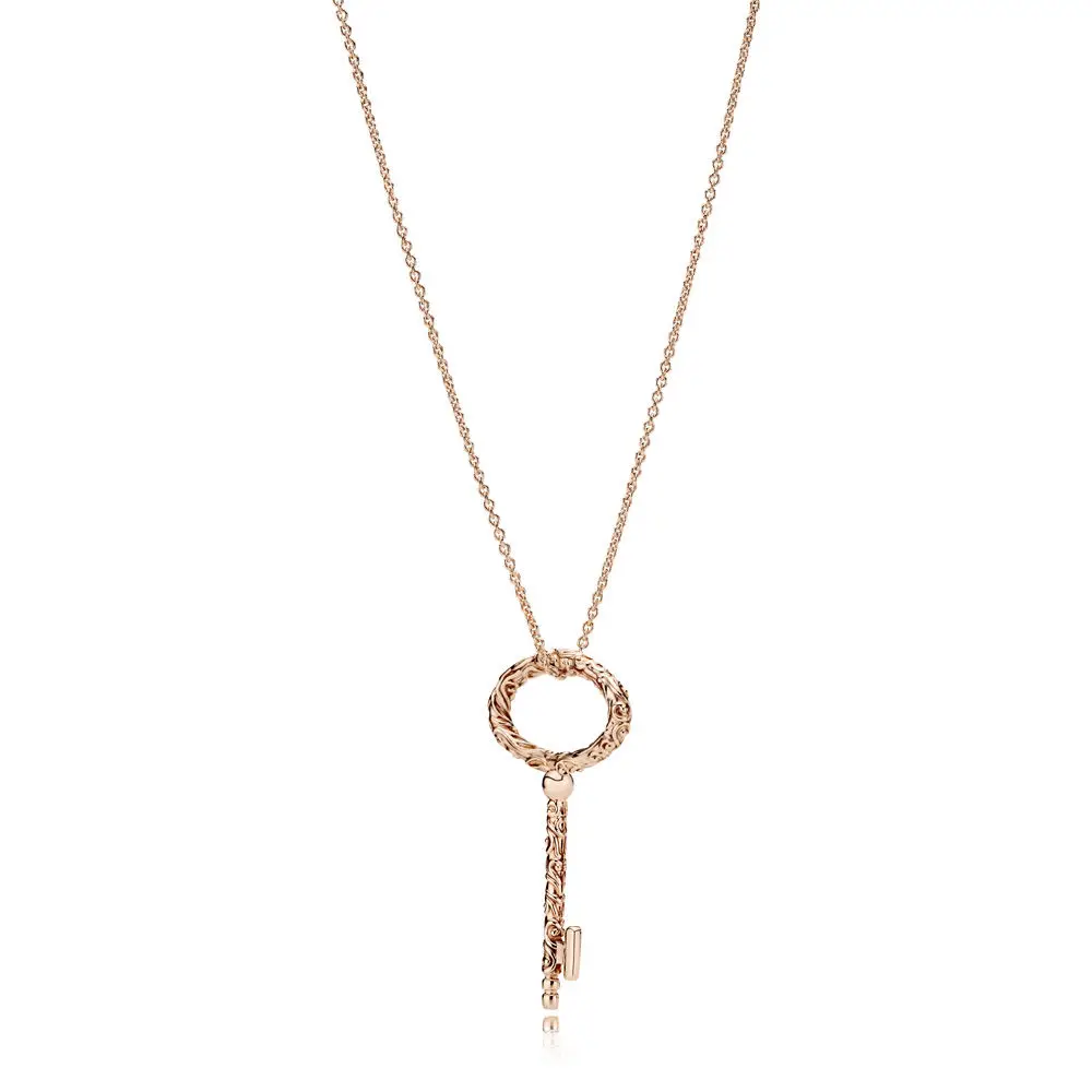 100% 925 Sterling Silver Necklaces Regal Key Necklace, Rose Fit Diy Original Women's fashion Jewelry