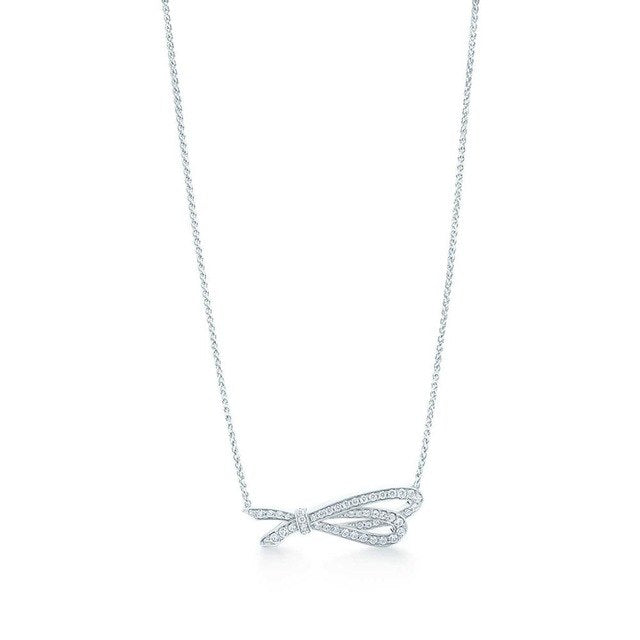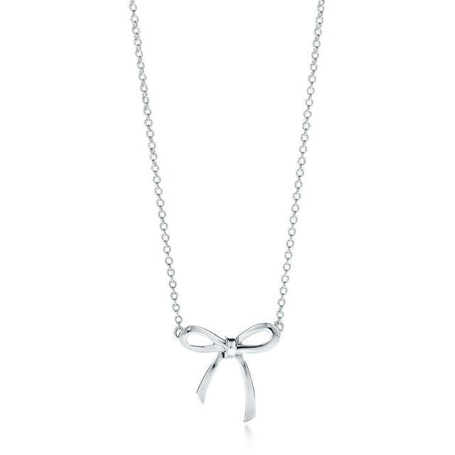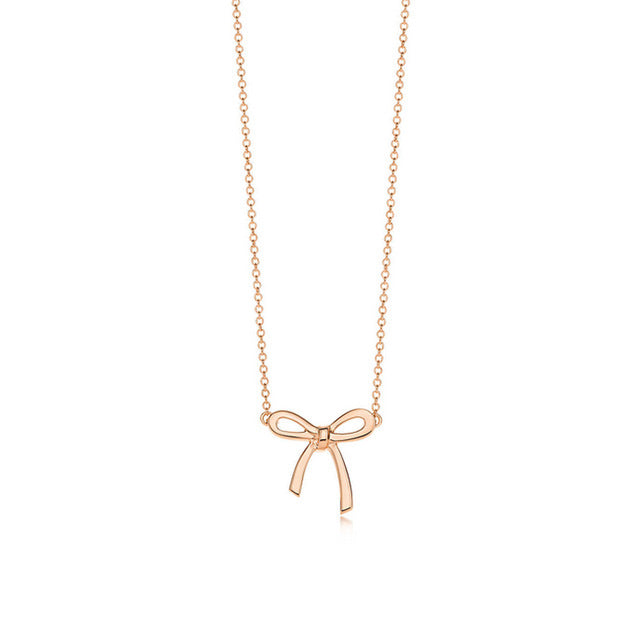TIFF 925 Silver Charm Heart Shaped Bow Love Pendant Necklace Rose Gold Original Genuine Women Jewelry