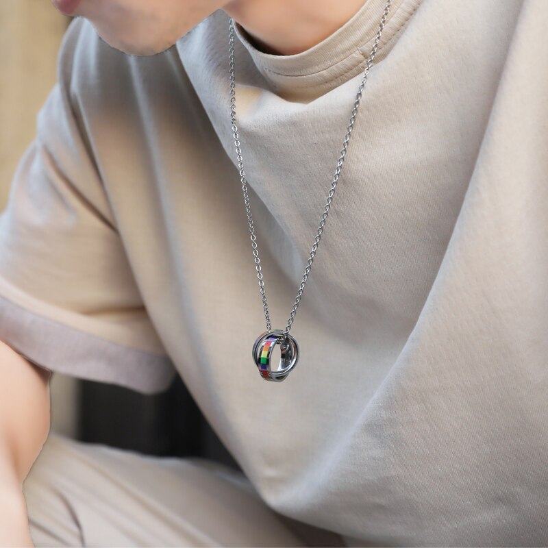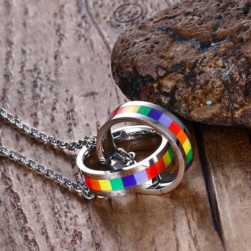 Rainbow Double Circle Women Necklaces Pendant LGBT Lesbian Female Jewelry 20" Chain