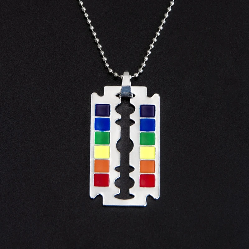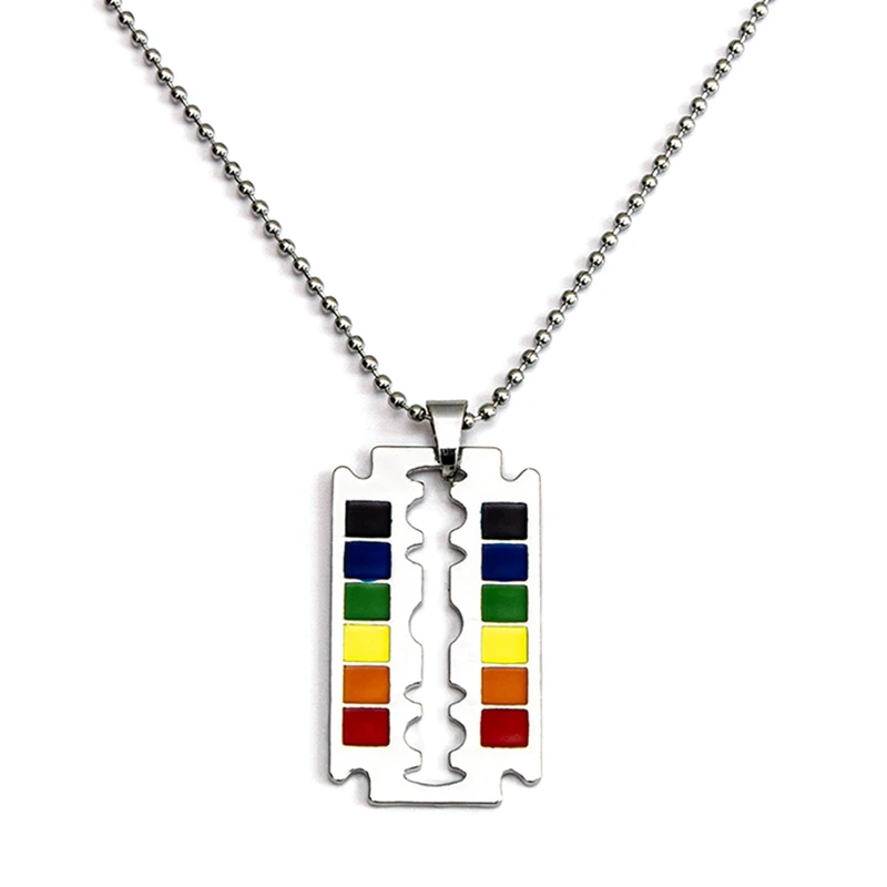 Rainbow Safety Razor Blade Pendant Necklace Rainbow Creativity Hip Hop Lgbt Lesbian Gay Pride Necklaces Jewelry
