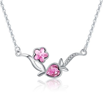 Real 925 Sterling Silver Blue Crystal Necklaces & Pendants Blossoms Flower Branches Women Choker Necklace Jewelry Wholesale