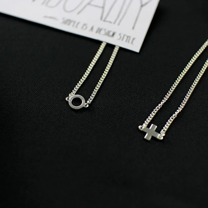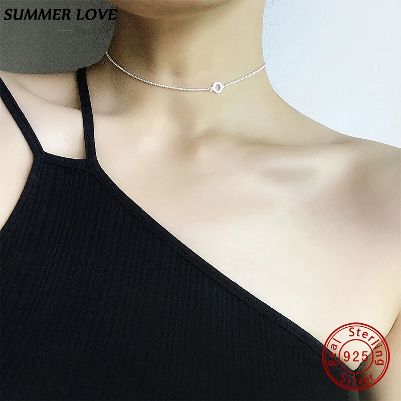Real 925 Sterling Silver Jewelry Cross and Circle Choker Necklaces Silver 925 Women Jewelry Party Gift Colar collana SUMMERLOVE