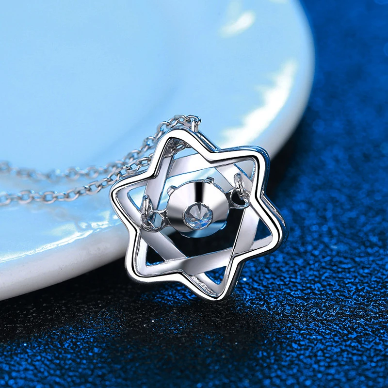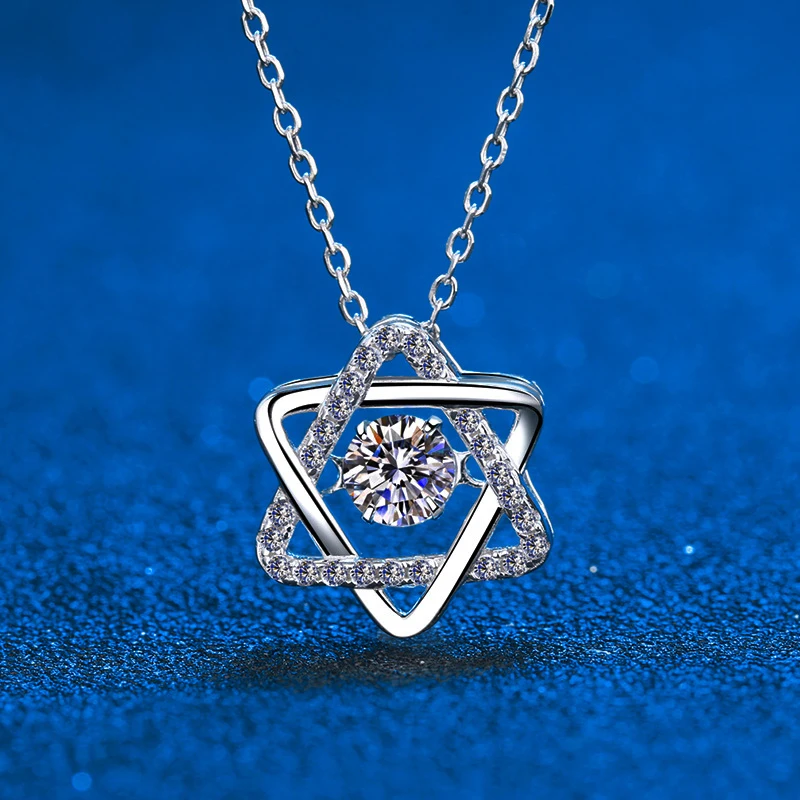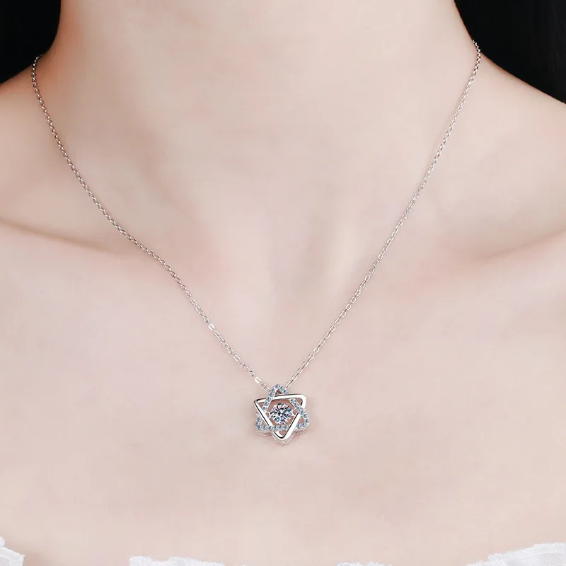 Real Moissanite Star Pendant Necklace 14k White Gold Plated On Sterling Silver Hollow Double Layers Hexagram Necklace For Women