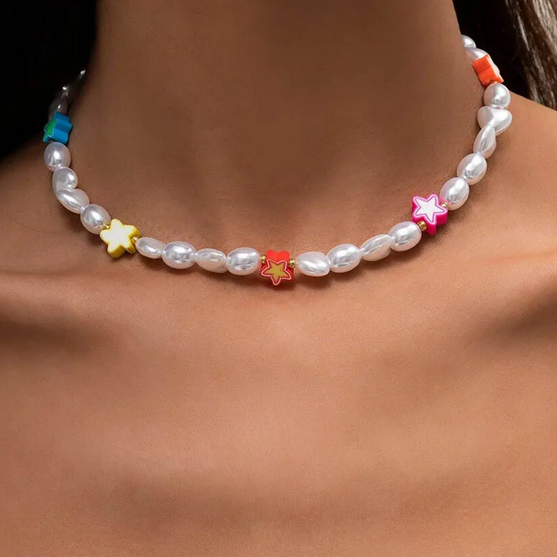 Real Pearl Choker Necklaces Flower Star Beaded Summer Beach Necklace For Women Jewelry 2022 Beads Collier Accesorios